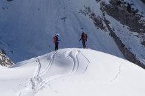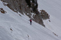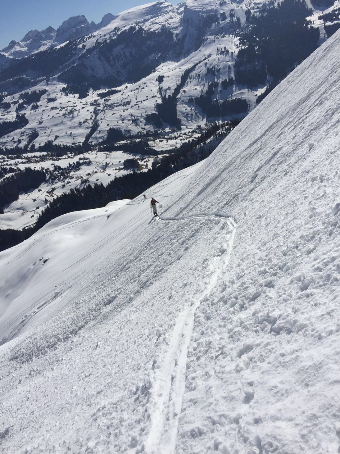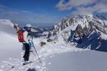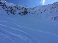 Die südseitige Abfahrt nach ins Toggenburg war teilweise gedeckelt, an flachen oder schattigen Stellen auch noch pulvrig. Die letzte Steilstufe vor Thurwies am linken Rand des Kars (im Sinne der Abfahrt) ein paar Meter zu Fuss. Aufstieg zum Schafwis teilweise schon ausgeapert (zur Abfahrt bedingt lohnenswert). Einstieg in die Nordrinne durchaus pulssteigernd. Dort aber sehr gute Verhältnisse mit 20 - 30 cm Pulver.