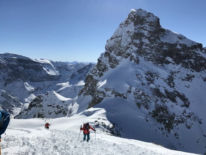 Schmelzharstdeckel im Aufstieg über die Südosthänge. Traumhafter Pulver in der Abfahrt nordost-seitig.