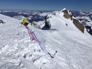 Schoene Einsame Tour heute im untere Teil bis auf den Gletscher. Dann wurde der Heli Betrieb merkbar... und auch ein Flugzeug machte 3+ Landungen auf dem Gletscher in etwa 3000m Hoehe. Am Gipfel dann Protest vom Mountainwilderness gegen den Heli Landeplatz. Hin und zuruck ueber Iffigenalp (2050hm).