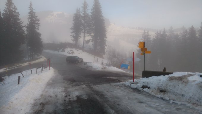 - Unterhalb des Gustibergs (ab 1'700 m + weiter unten) gab's Nass-Schnee