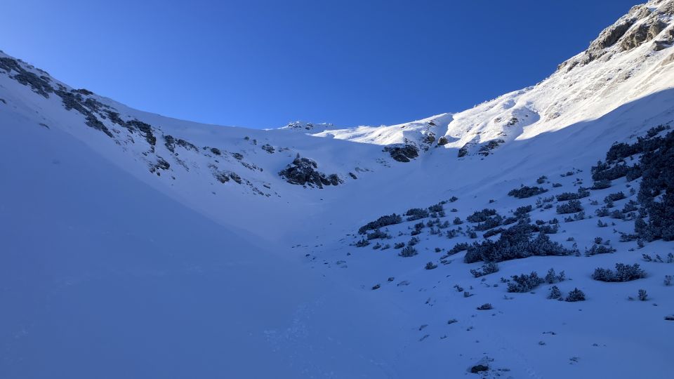 Anfangs auf Piste gut zu gehen, durchgehend Schnee. Im Pontenkar dann erstaunlicherweise gut in Aufstieg und Abfahrt, obere Hälfte sogar Pulver. Gipfelanstieg zu Fuss, ging gut ohne Steigeisen, Wanderweg tlw. aper. Gegen Schluss auf der Piste mit neuen Skis aufpassen, da Feindkontakt nicht zu vermeiden.