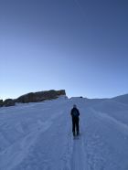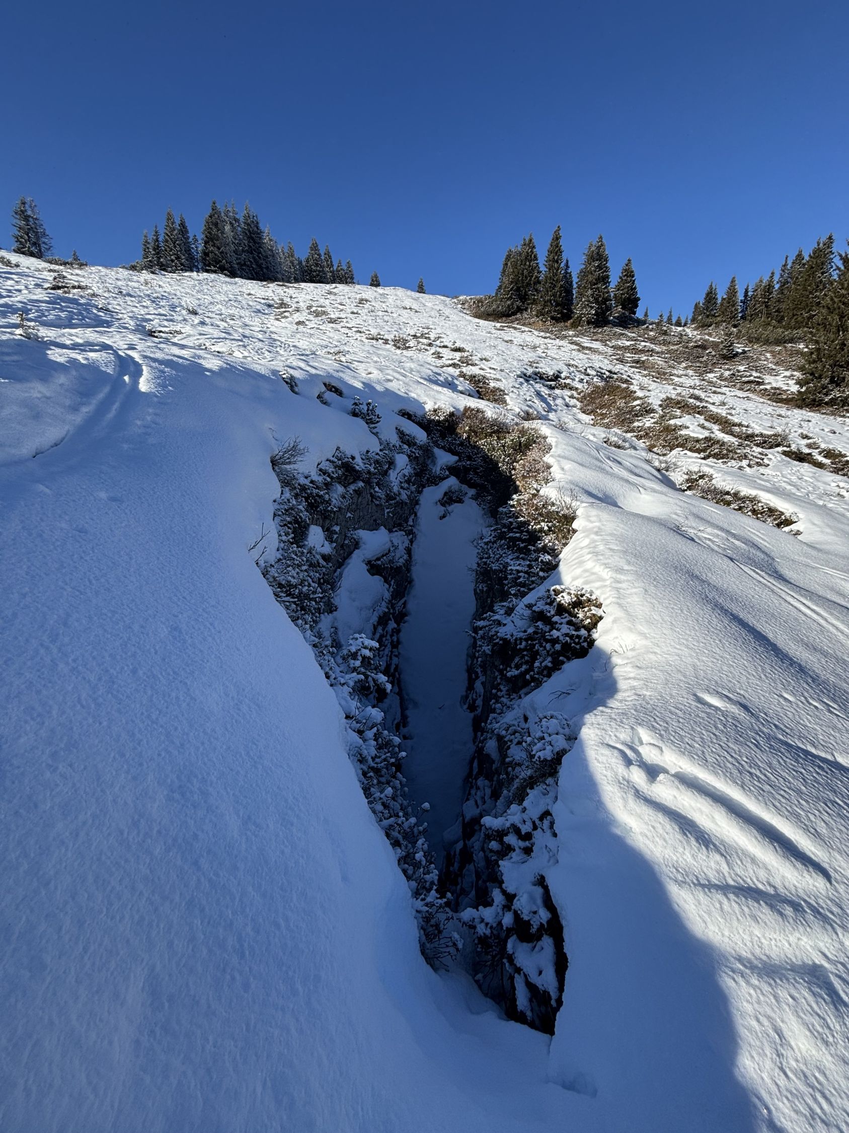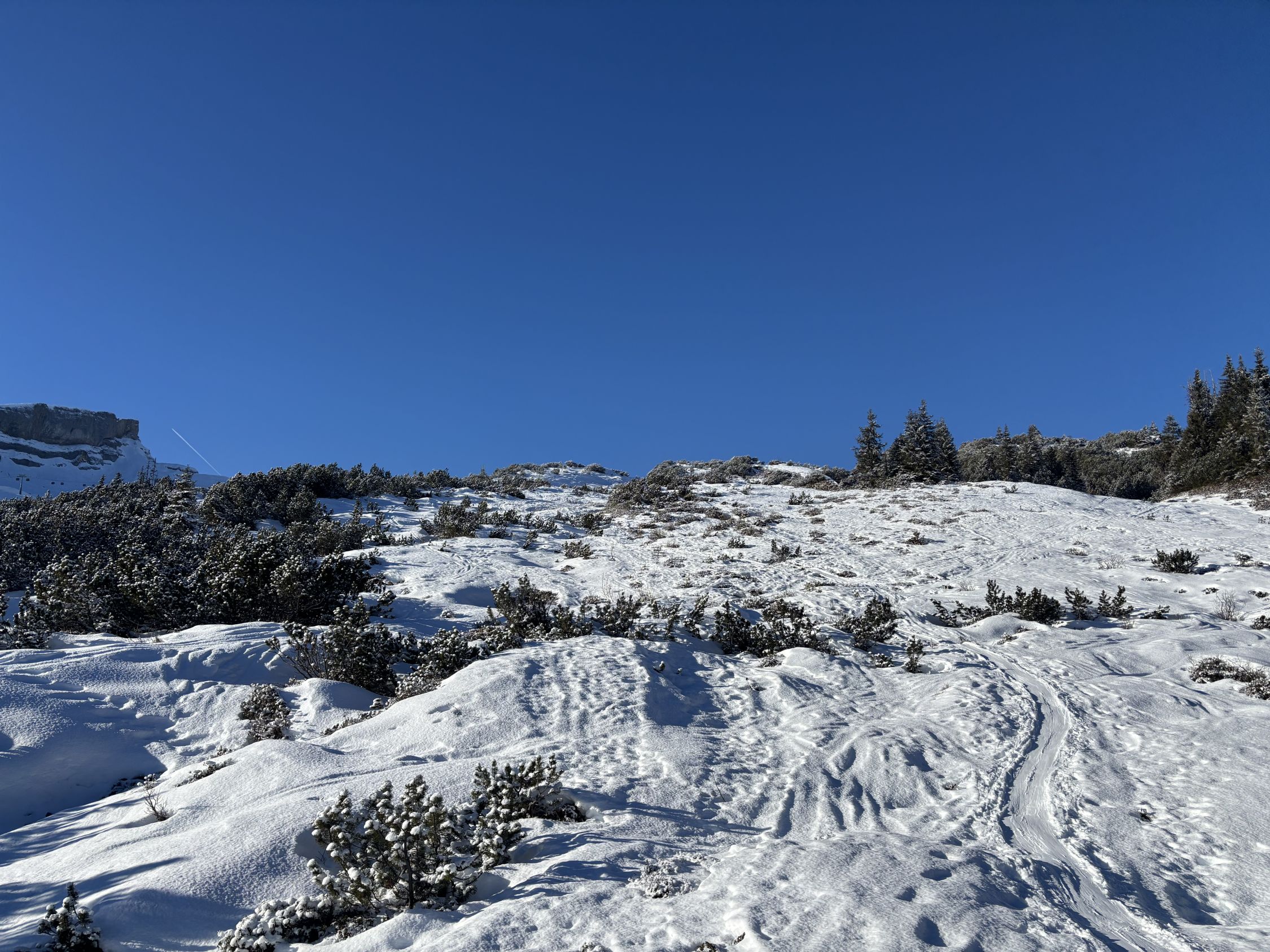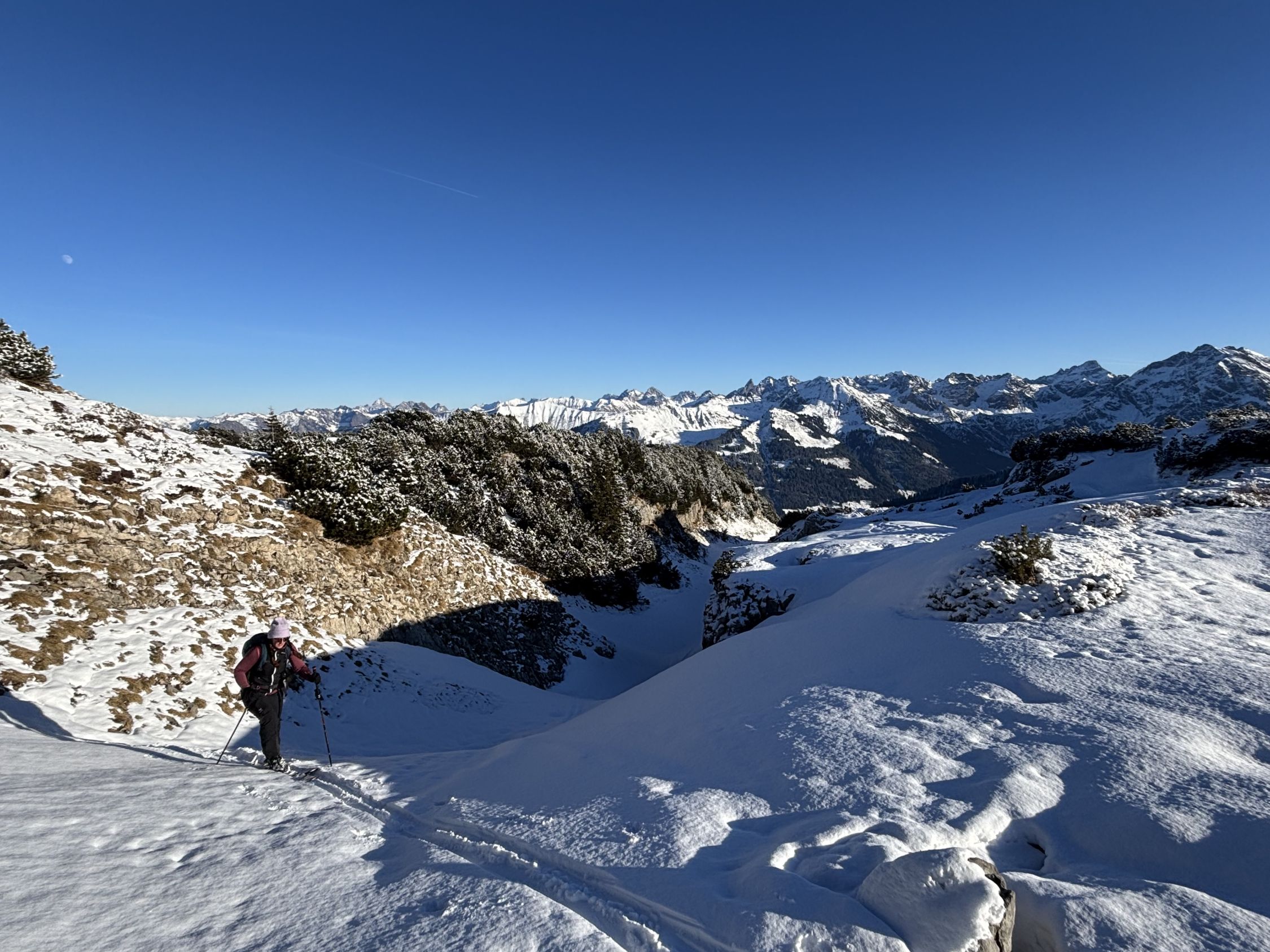 Dass es gerade extrem wenig Schnee hat, ist ja allgemein bekannt. Wir haben die Tour als kleine Jahresabschlussrunde gemacht. Immerhin herrliche Sonne und etwas Bewegung an der frischen Luft, insofern war es dennoch schön. Das Skigebiet ist entsprechend der Erwartung sehr voll, deshalb am besten sehr früh zwischen 6:00 und 9:00 Uhr gehen, wenn man das will… Ansonsten sind sir die Route des Skigleitweges über den Gottesacker gegangen. Da ist kein Skibetrieb. Der Schnee reicht für den Aufstieg, Abfahrt dann über die Skipisten. Achtung: Aufgrund des wenigen Schnees ist die Tour über den Gottesacker nicht ohne! Die magere Schneedecke und die viele Latschen erschweren die Wegfindung. Achtung auch vor den gefährlichen Karstlöchern.