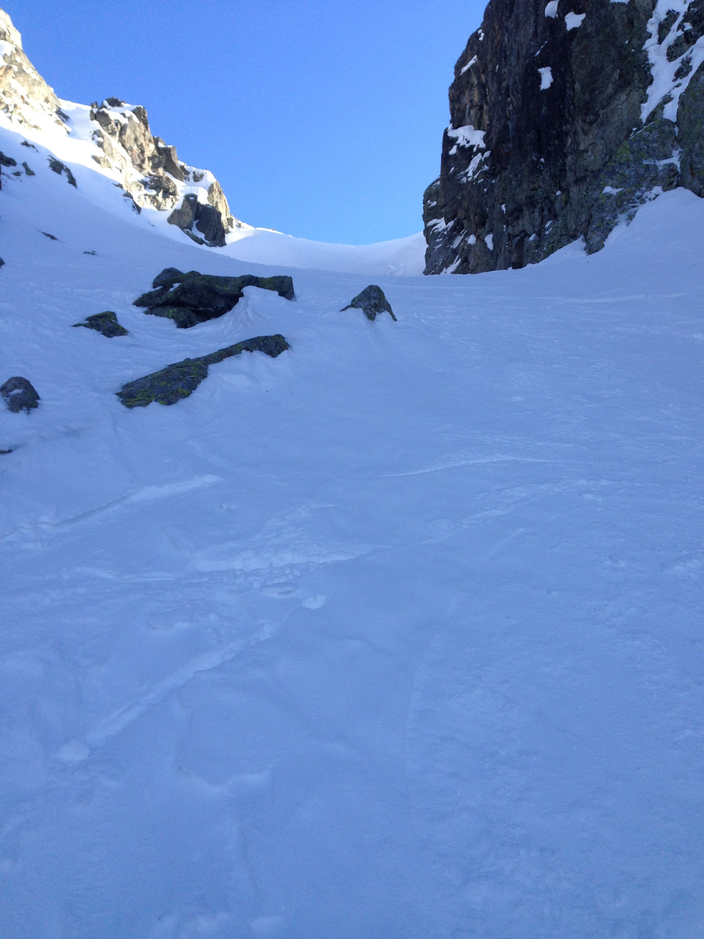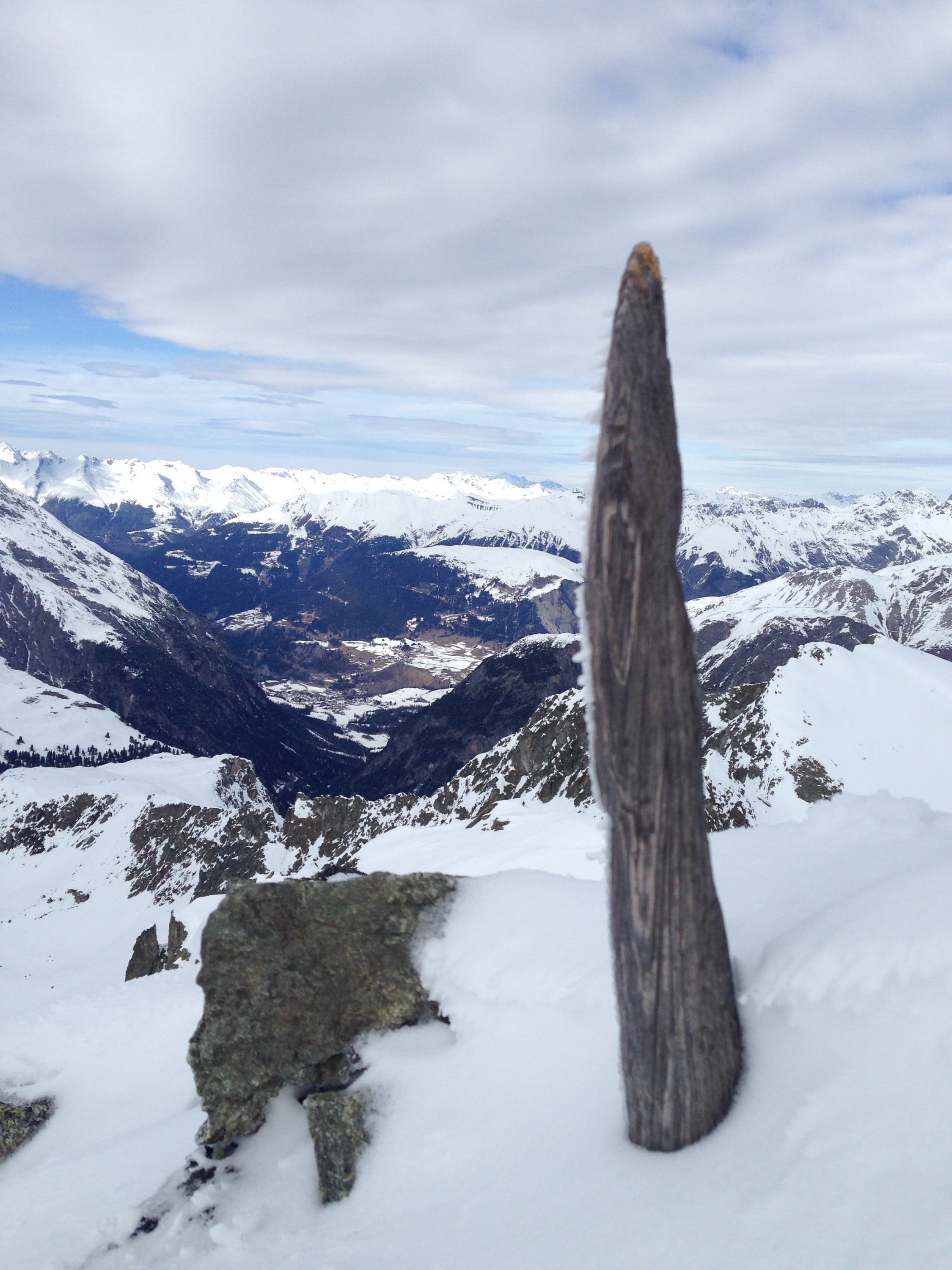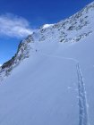 Wir gingen nicht direkt zum Gipfel hoch. Wir gingen links durch eine Schneerinne hoch zur Krette. Auf der Krette gingen wir zum Gipfel.