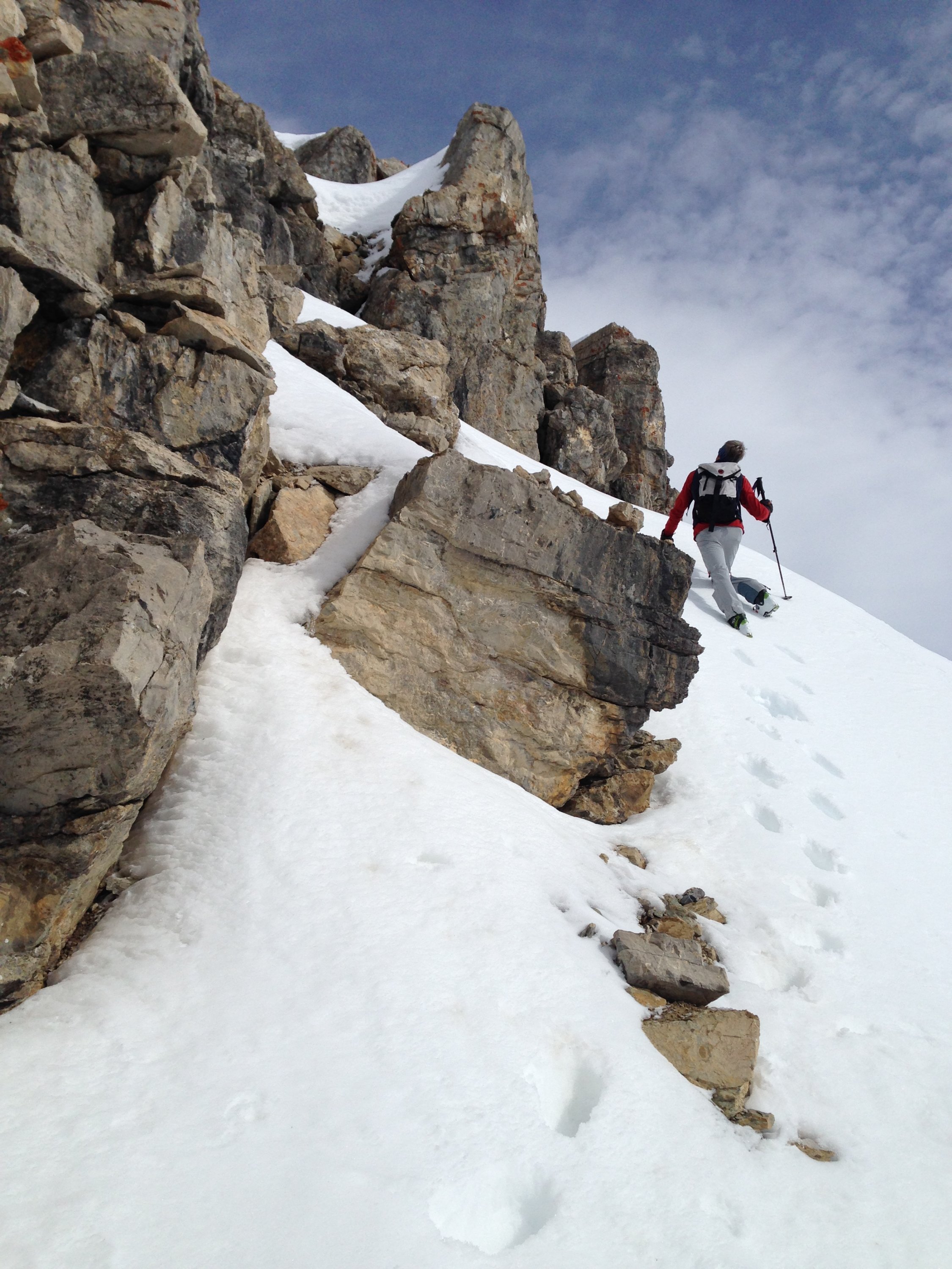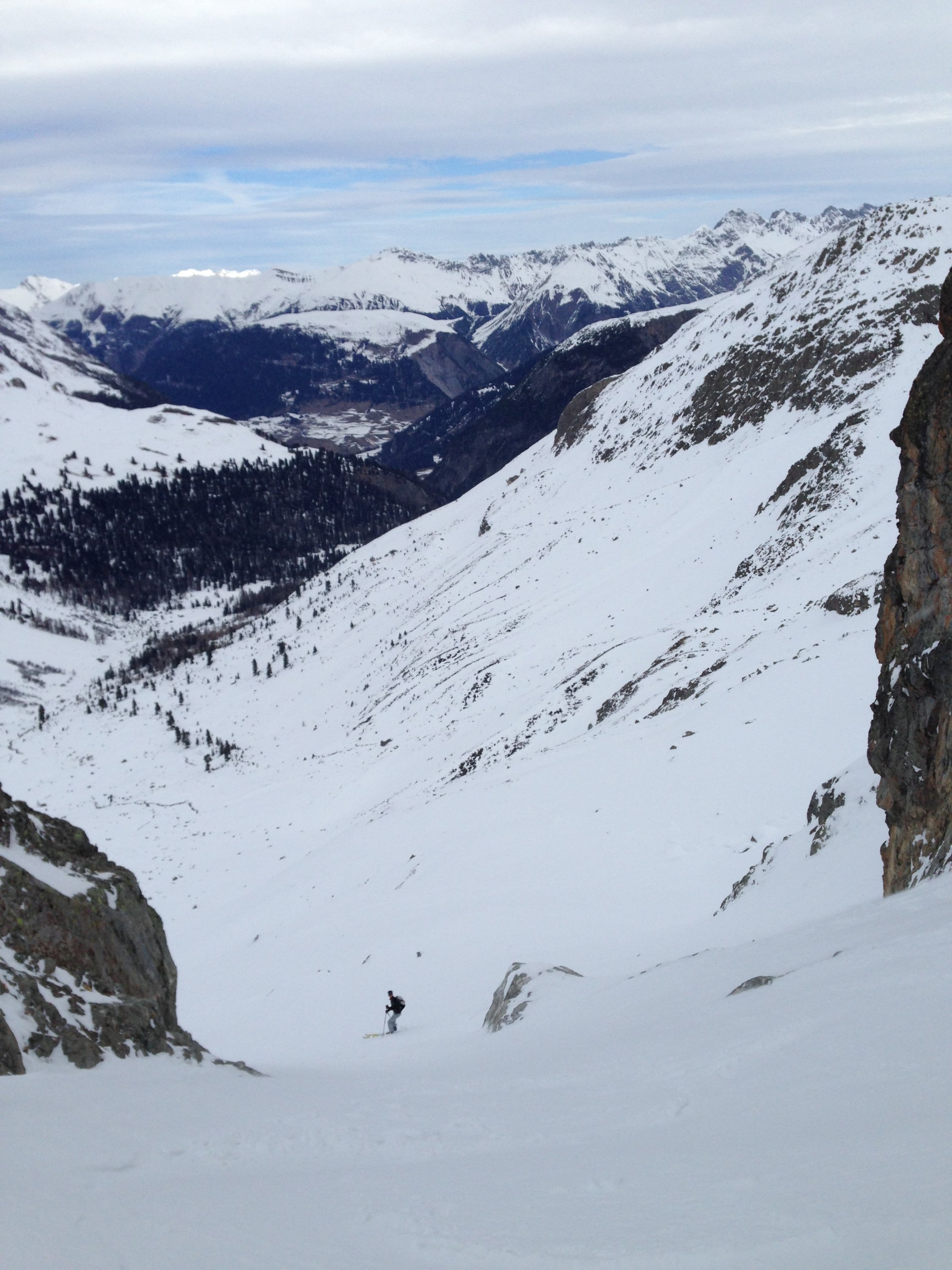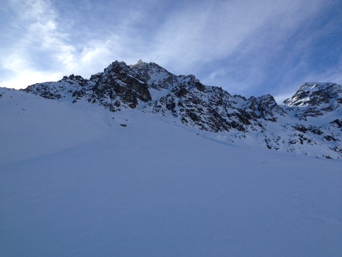 Gut aber ohne Ski tragen geht nicht. Schnee weg geblasen auf 2900m. Auch ab und zu ein versteckter Stein berührt bei der Abfahrt.