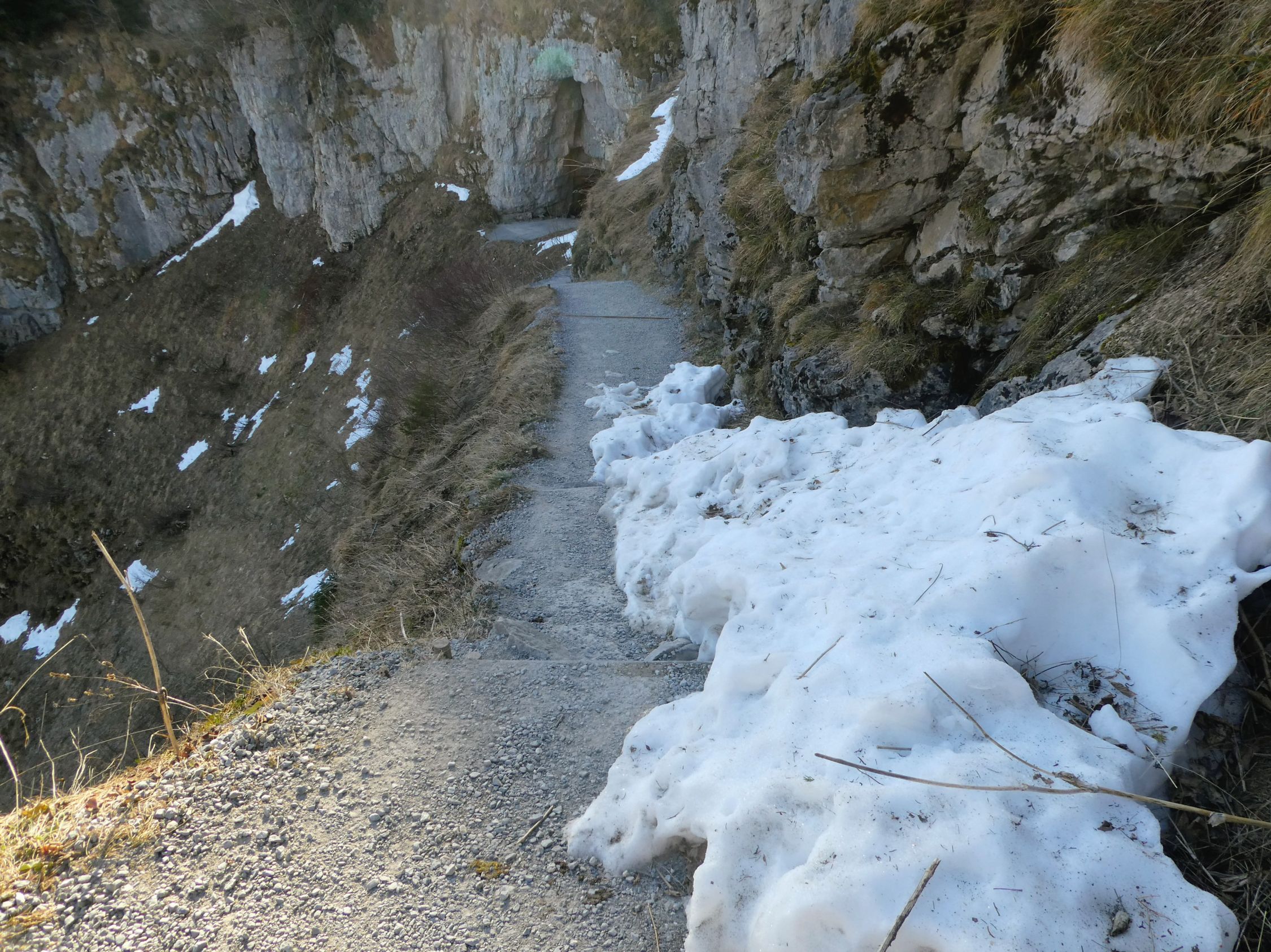 Der Weg Schäfler - Ebenalp ist, wo noch Schnee liegt, gut gespurt und wird wohl momentan auch häufig begangen; schliesslich ist die Ebenalpbahn in Betrieb.