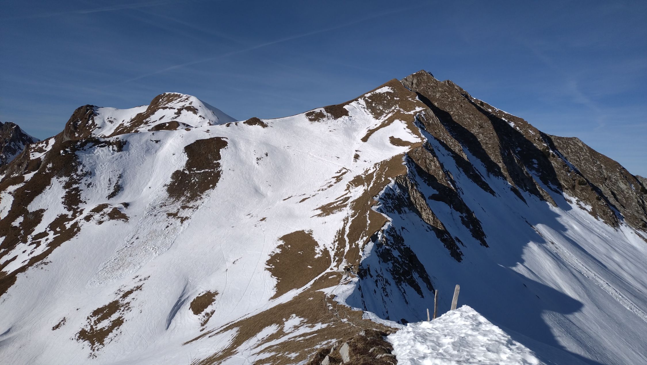 Fazit: zu Fuss mit geeigneter Ausrüstung eine schöne Runde. Für Skitouren ist Südseitig die Unterlage weg, in den anderen Expositionen zwar noch vorhanden. Es braucht viel Schnee dass es sich wieder lohnt.
