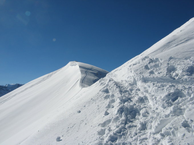 Beim Aufstieg schöne, weiche Spur vorgefunden vom harten Deckel darunter nicht viel gespürt.Schneeverhältnisse sie Fotos.