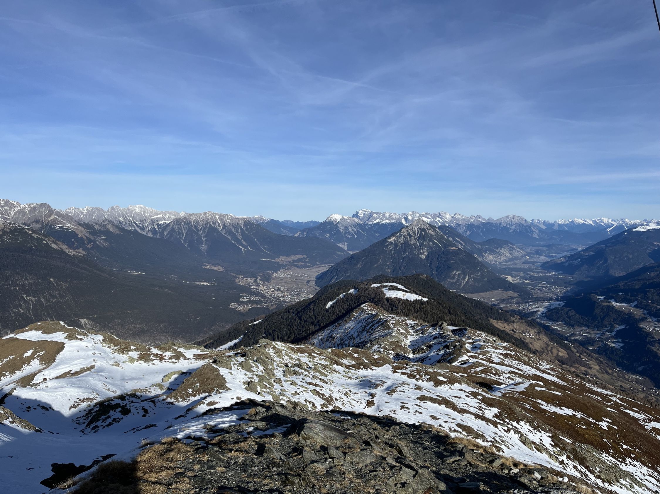 Am 1. Januar in Trailrunningschuhen auf über 2‘400m. Südhänge so ziemlich alle Aper bis gegen 2’500m.