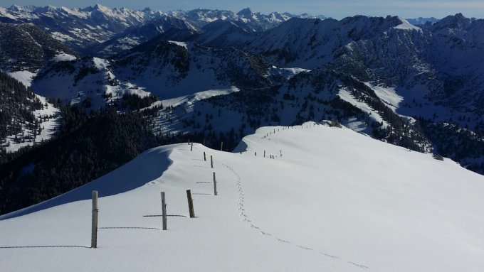 Das Gebiet ist gut eingeschneit. Heute lagen ca. 10 cm frischer, am Morgen noch unverspurter Pulver auf einer soliden Unterlage.