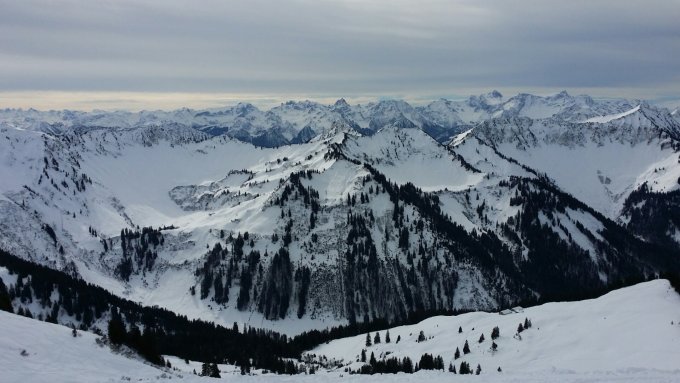 Wir verloren bei der Anfahrt nach Laterns schon fast den Mut, noch Schnee zu finden, doch genau vom Bad Laterns weg hat es noch genügend. Die gesperrte Passstrasse ist wie eine Skipiste schön platt gefahren. Im oberen Teil des Aufstiegs war die Querung unterhalb des Gipfels eher unangenehm, da am Morgen der Schnee hart und die Spur vereist war. Wegen des bedeckten Himmels hatte die Sonne zu wenig Kraft. Auch die Abfahrt war anspruchsvoll, ging aber besser als erwartet, da die Kruste noch tragfähig war.
