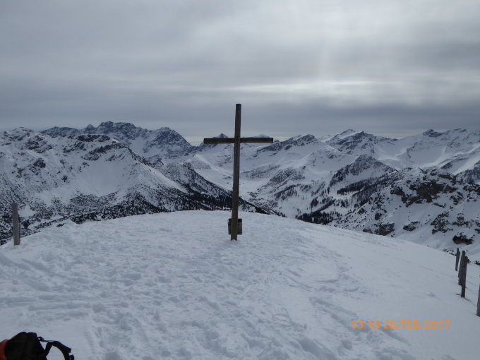 sind vom Schönberg die steilen Hänge durch den Wald bis Gurschg (1770) abgefahren. Von dort angefellt und ca. 200 Hm wieder zurück auf ca. 1900 m. Von dort nach Sassförkle. Zum Rossboda hinab verliert man etwa 100 Hm, die man zum Schönberg wieder ansteigen muss.Die gespurte Traverse unterhalb des Stachlerkopfs (2070) ist bei den momentanen Lawinenverhältnissen nicht zu empfehlen