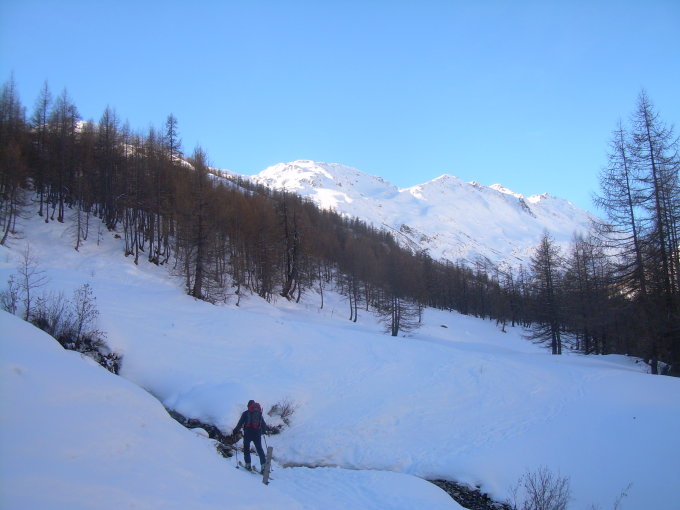 Fantastisches Wetter mit besten Sichtbedingungen. Wegen des Tiefs vom Vortag zu Beginn der Tour mit Schatten noch kalt, aber nicht mehr wirklich winterlich. Die Neuschneemengen beliefen sich auf 5 bis allerhöchstens 10 cm. Ausreichend Schnee im Gebiet, auch für Skitourler.