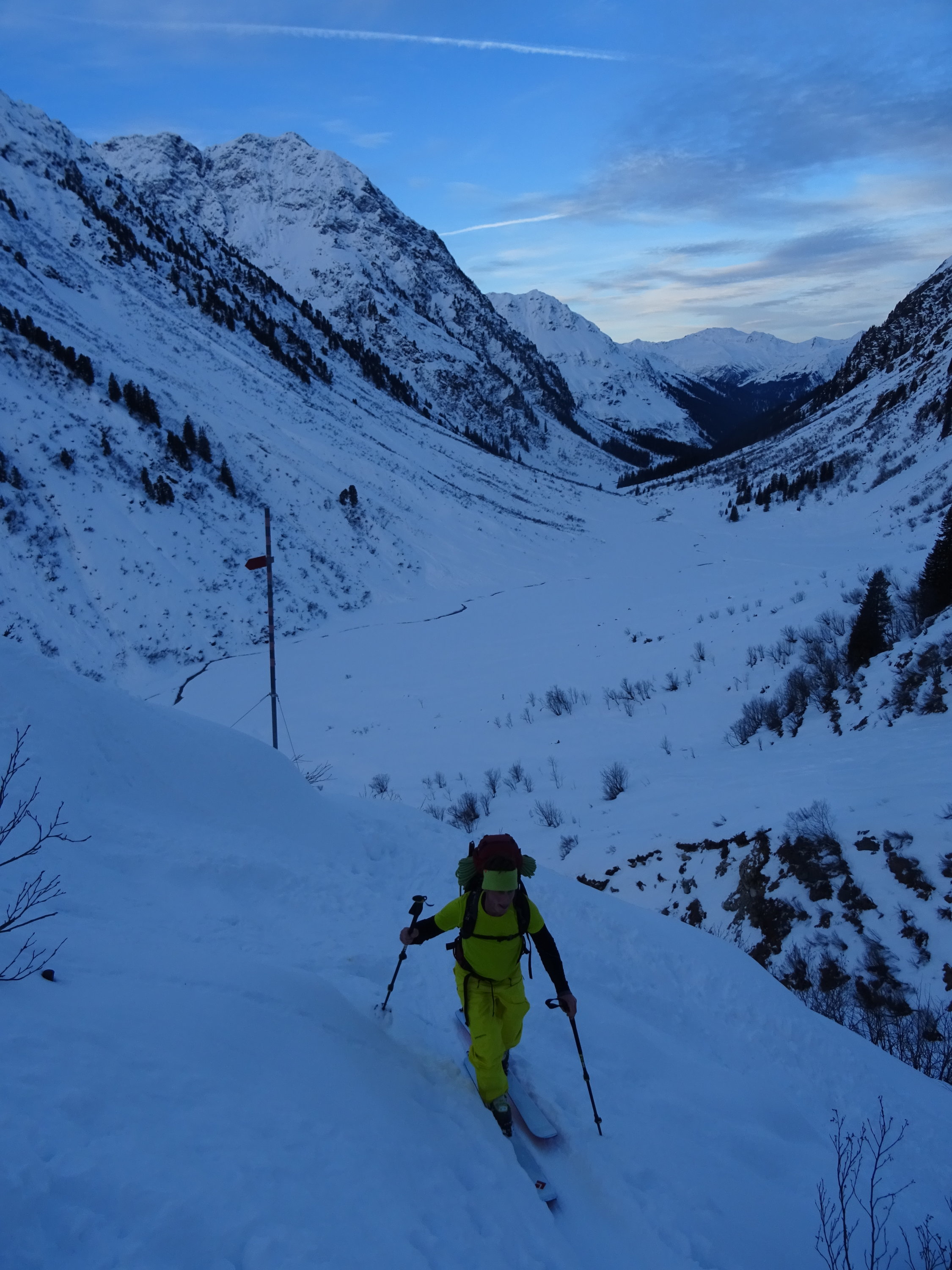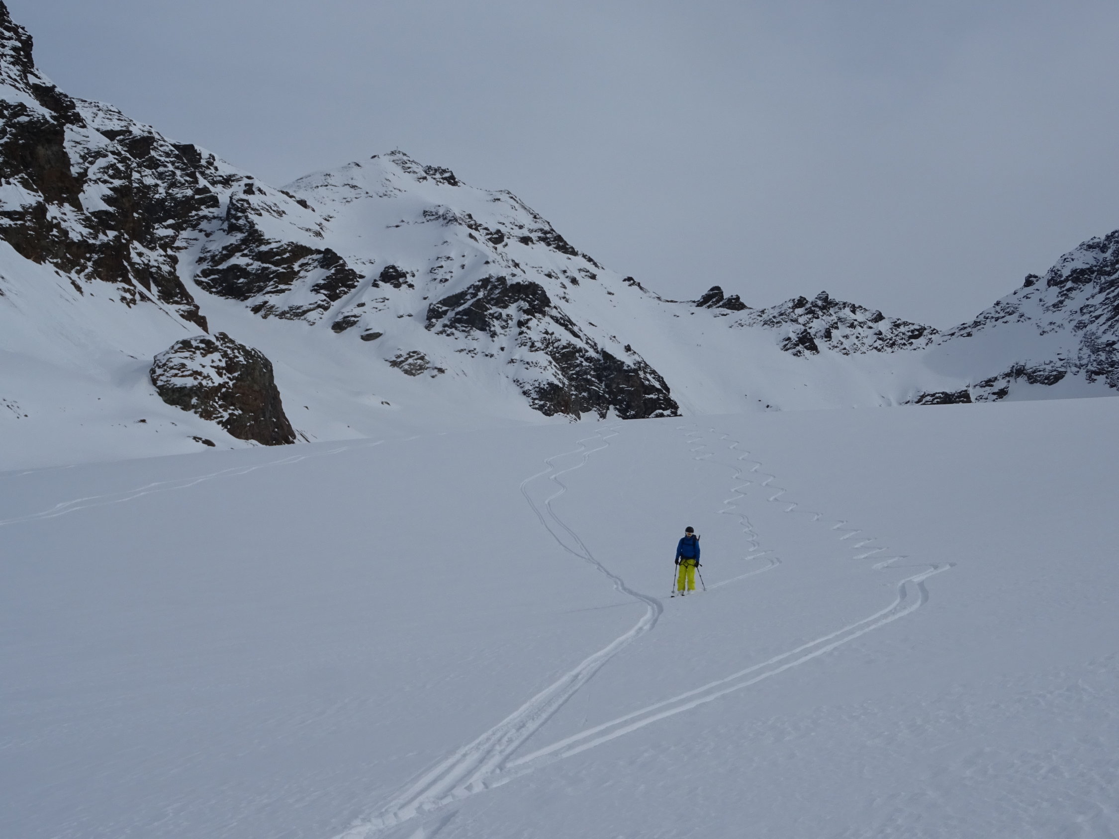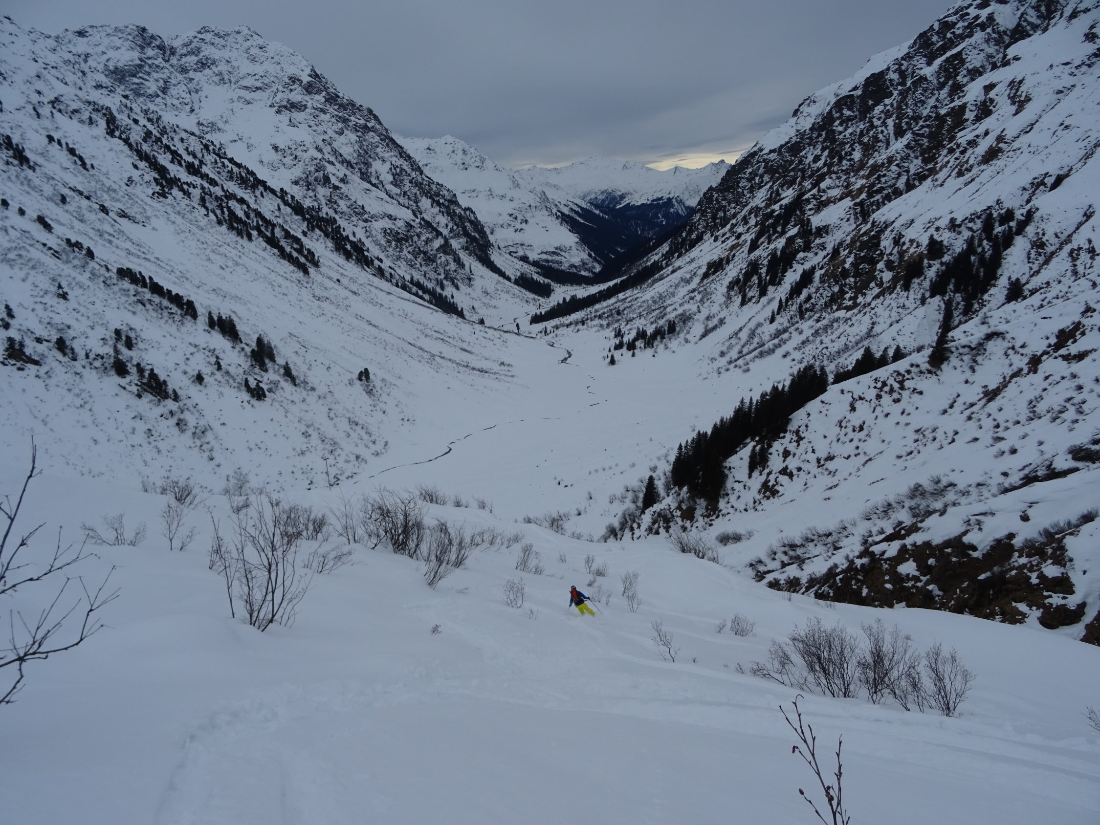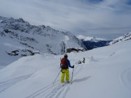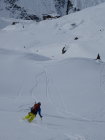 Sehr schöne und lange Tour. Der Schnee war perfekt. Ganze Tour kein Steinkontakt zu verzeichnen gehabt.Leider machte die Sonne nicht so mit wie wir es gerne gehabt hätten. Abfahrt von der Silvrettahütte bis Masten 2 zwar pulver gut, aber die Sicht war so diffus, das wir froh waren, heil runtergekommen zu sein. In der Abfahrt von der Alp Sardasca wurden die paar Cm Neuschnee schon etwas klebrig und es wurde heute etwas mehr Stockeinsatz gefordert. Dafür lief es auf der Loipe perfekt. Danke der Hüttencrew für Speis und Trank! Tolle, junge Hüttencrew :-) Merci Marco, Isar und Steffi.