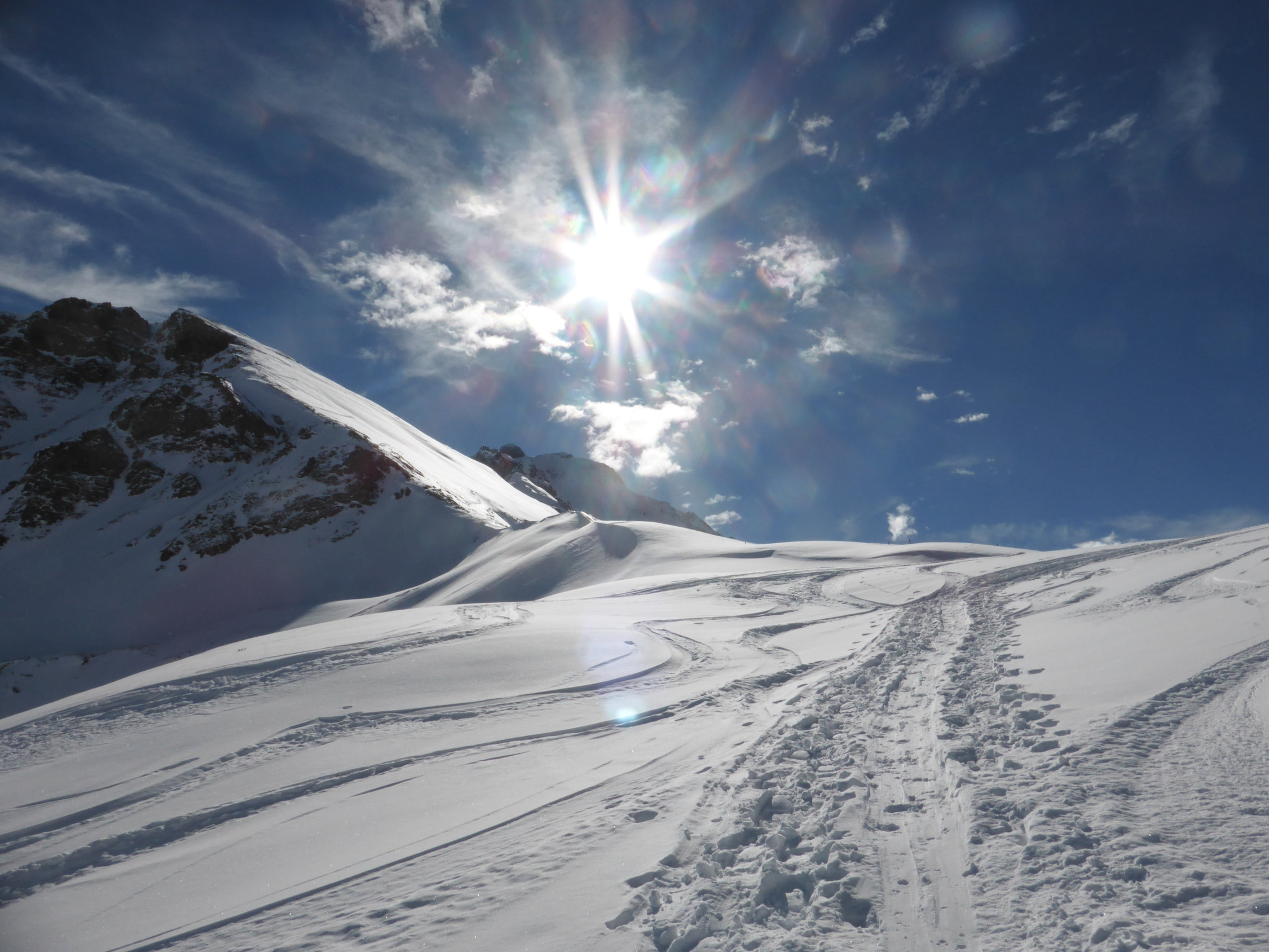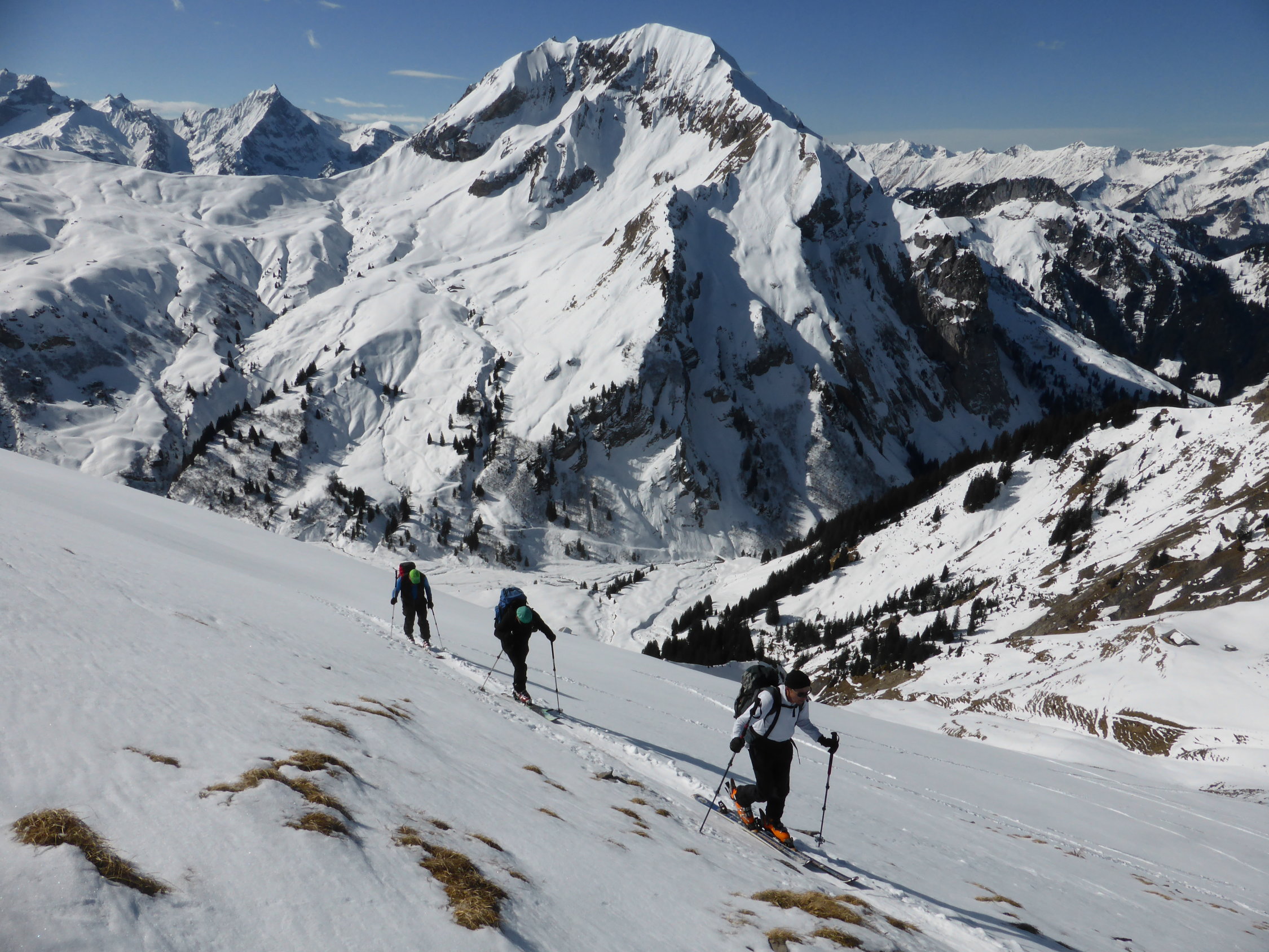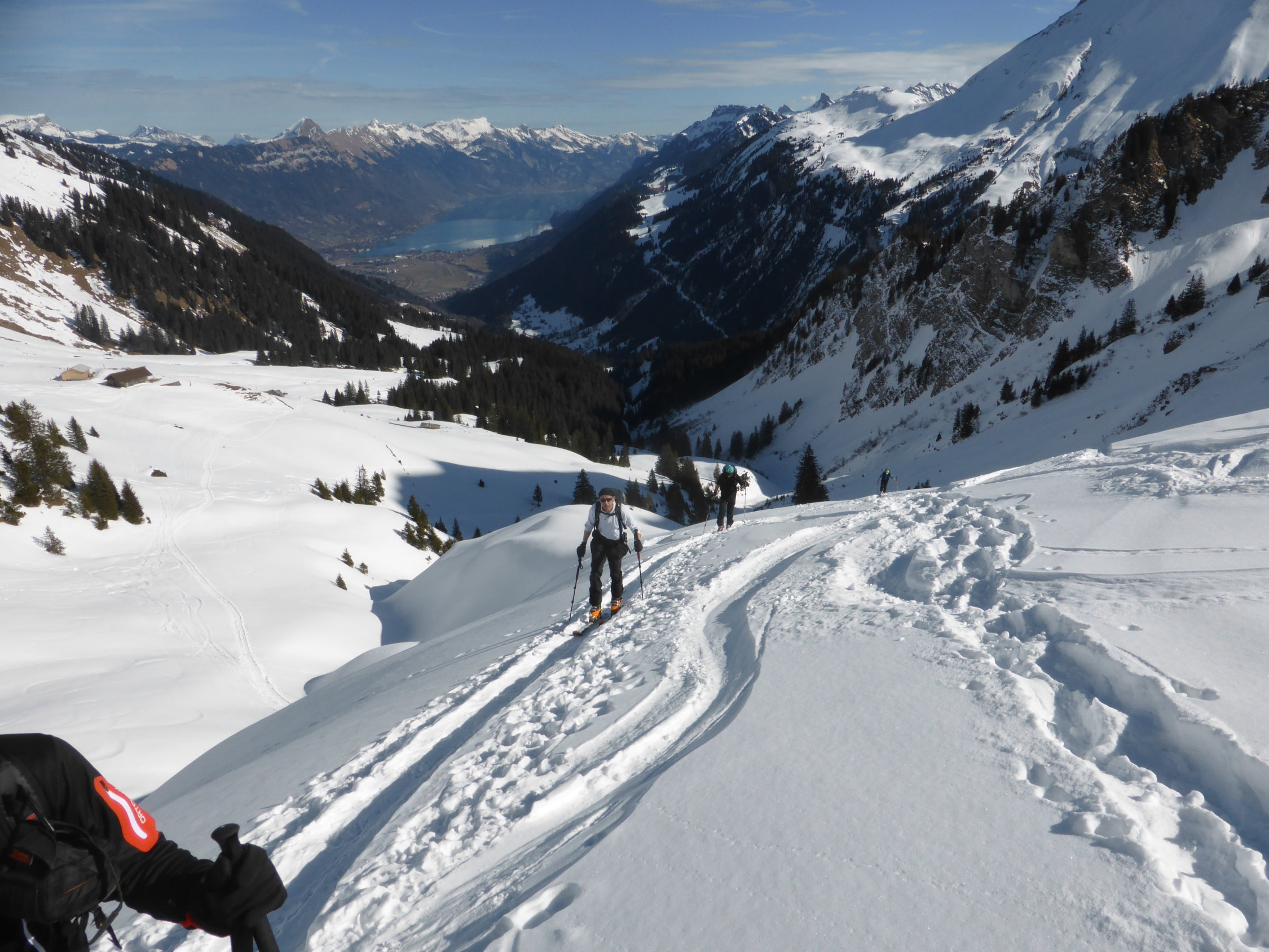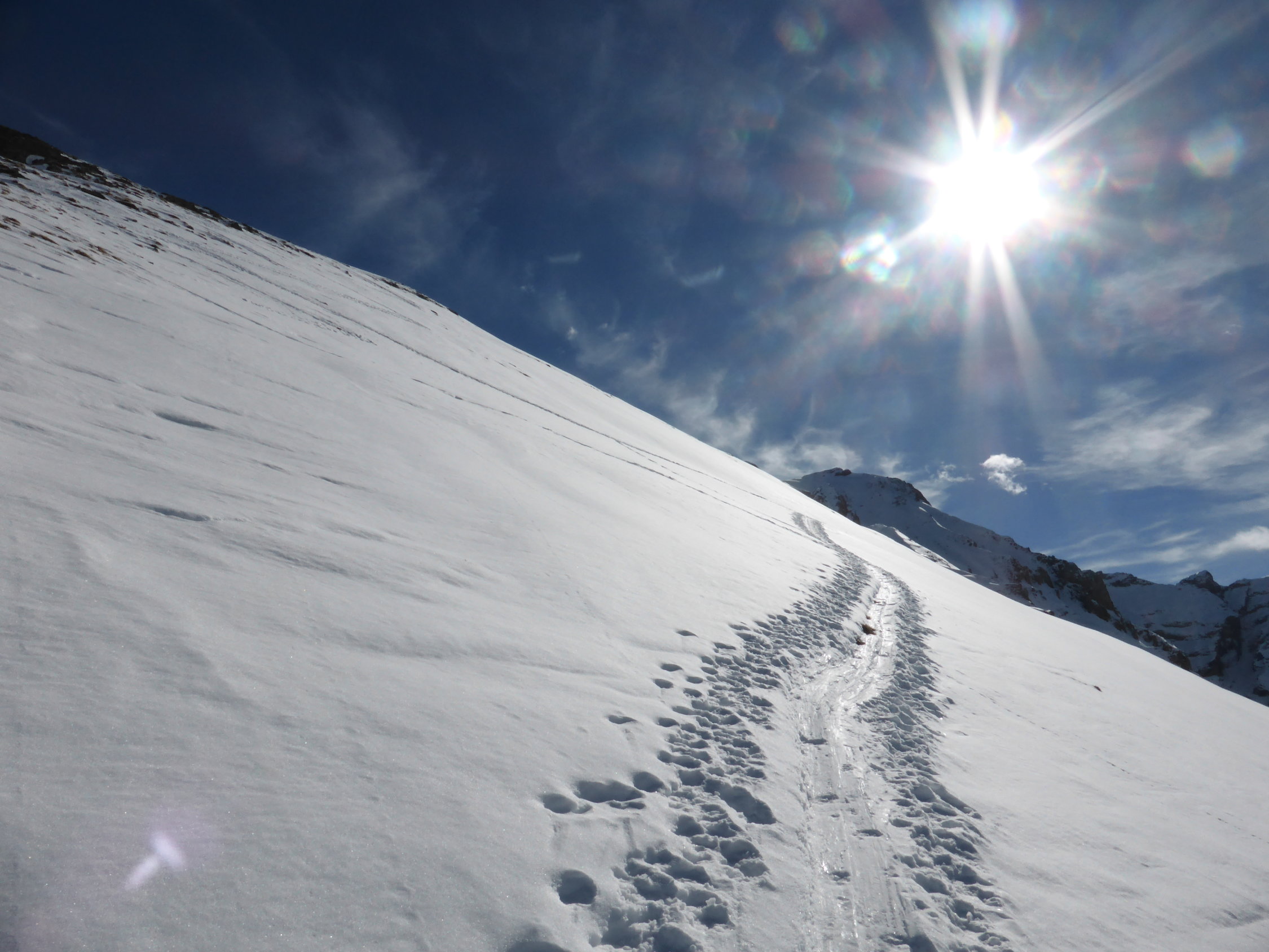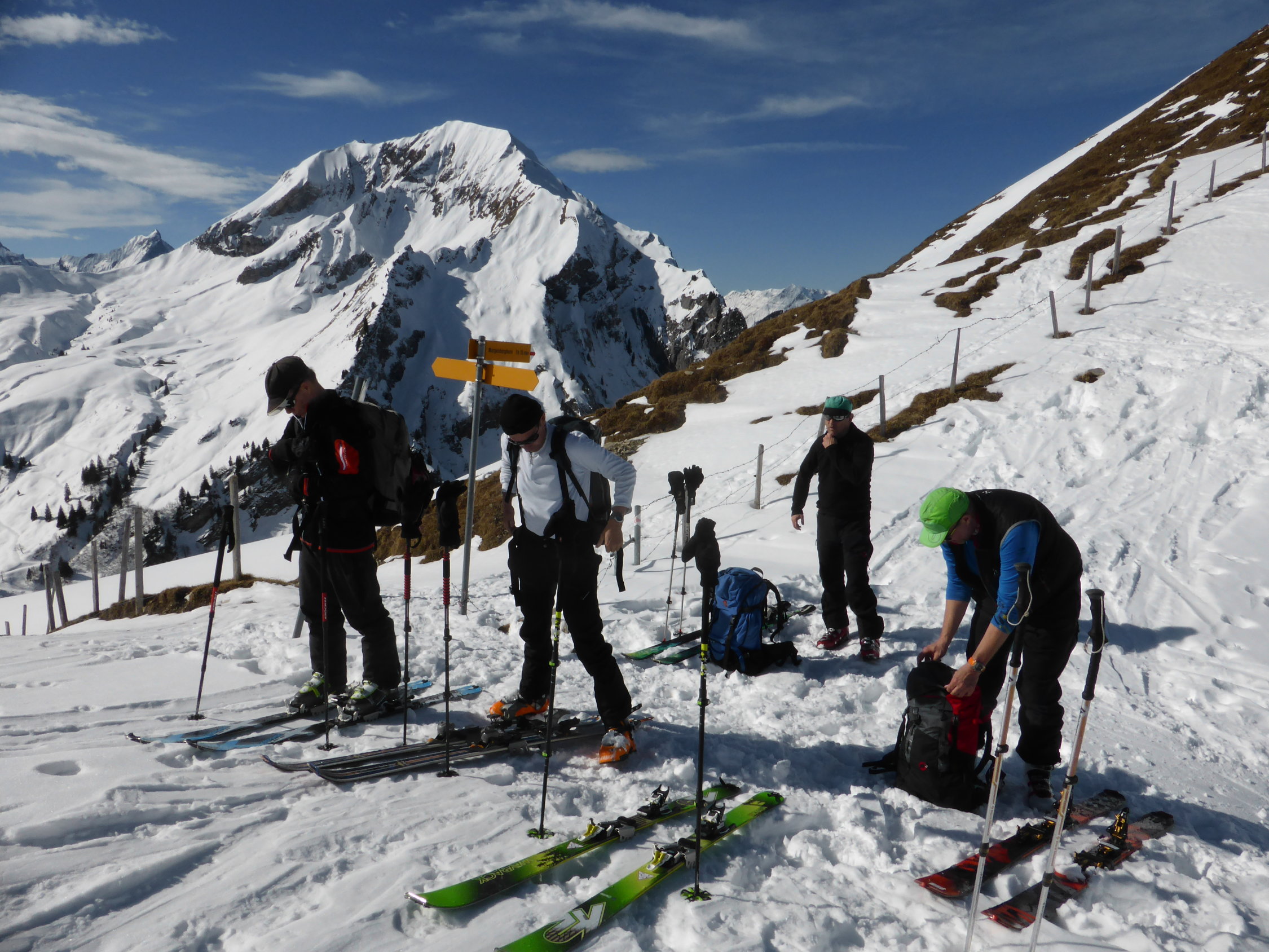 Schnee: am Anfang noch etwas hart und desshalb entsprechend mühsam (vor allem im steilen Teil unterhalb Ramsermatten), danach jedoch sehr angenehm zum gehen. Gute Spur bis zum Gipfel. Ab Rengglipass Harscheisen von Vorteil.