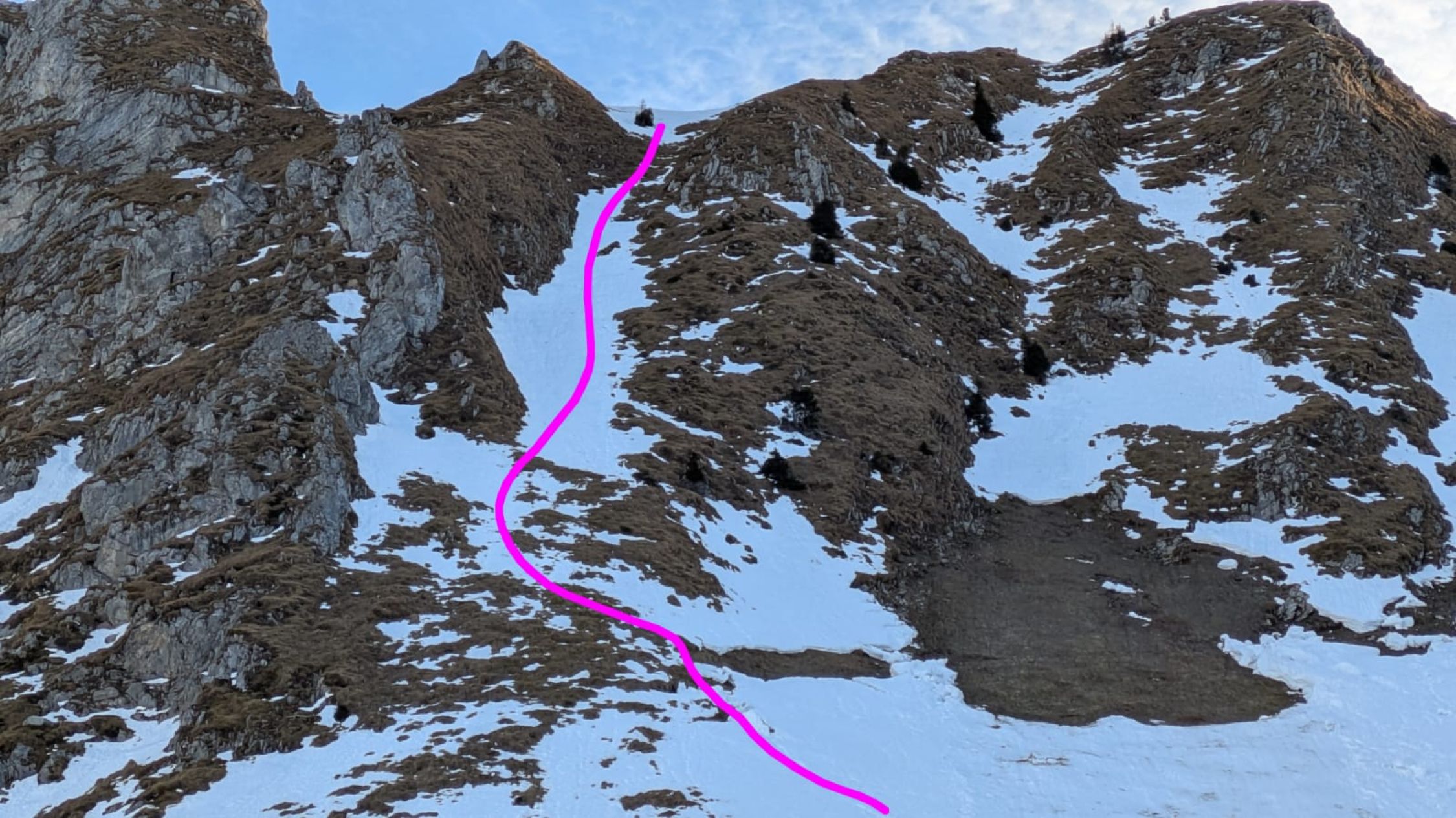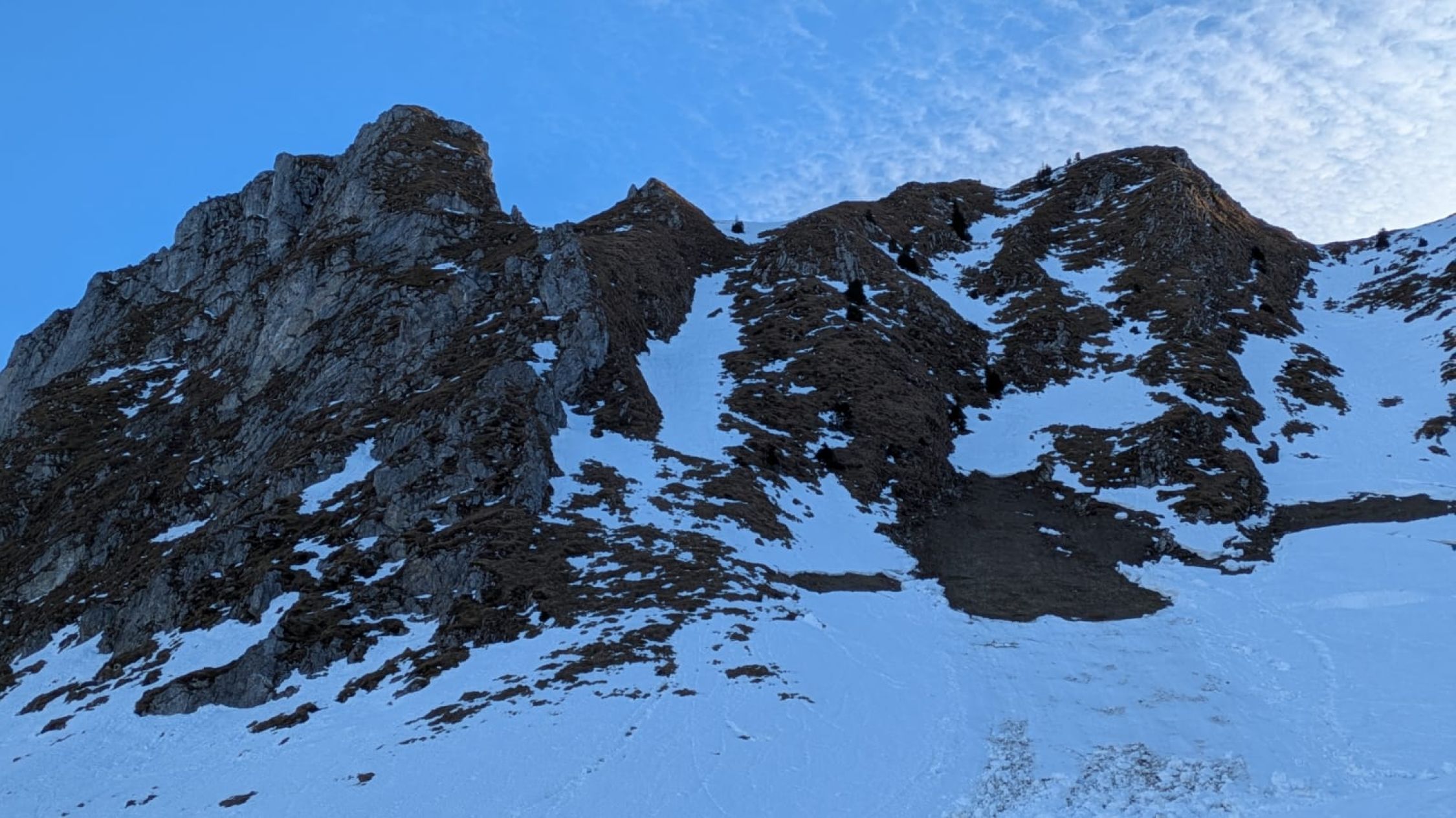 Der Aufstieg erfolgte von der Unteren Gantrischhütte, in die Nordflanke hinein vom Bürglen hinein. Bei 1970m stiegen wir nach rechts durch ein 100m langes, und bis zu 50 Grad steiles Couloir in die Chummligrat-Lücke. Es herrschten ausgezeichnete Hart- und Firnschnee Verhältnisse. Vielen Dank an Mutter Natur!