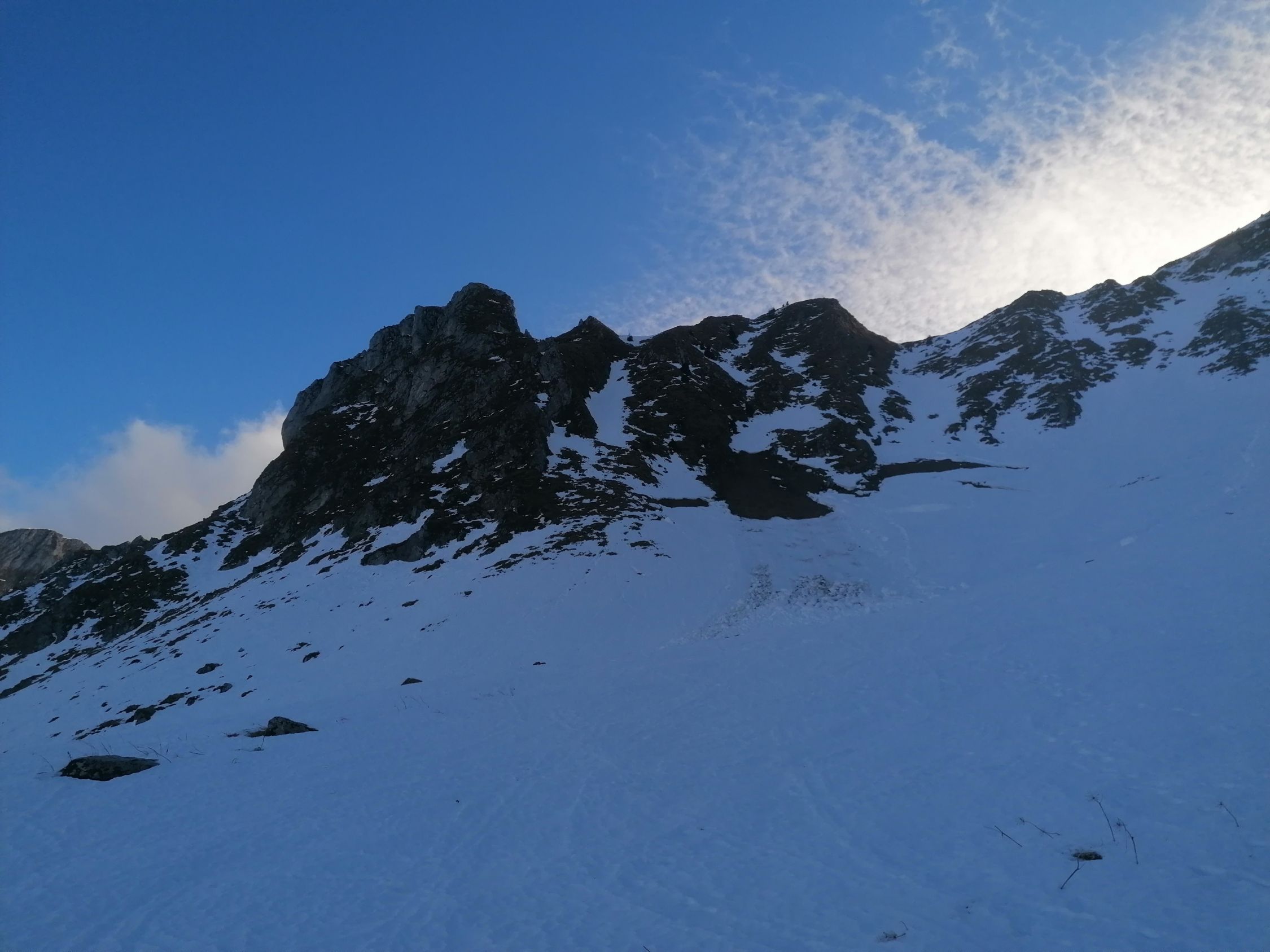 Wunderbare Hochtour in den Berner Voralpen beim Gurnigelpass, mit einem alpinen Ambiente. Der Aufstieg erfolgte von der Unteren Gantrischhütte, in die Nordflanke hinein vom Bürglen hinein. Bei 1970m stiegen wir nach links durch ein 100m langes, und bis zu 50 Grad steiles Couloir in die Chummligrat-Lücke. Es herrschten ausgezeichnete Hart- und Firnschnee Verhältnisse. Vielen Dank an Mutter Natur! Vielen Dank an Nicole für die unvergessliche Hochtour.
