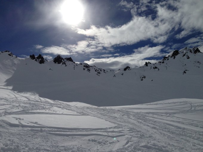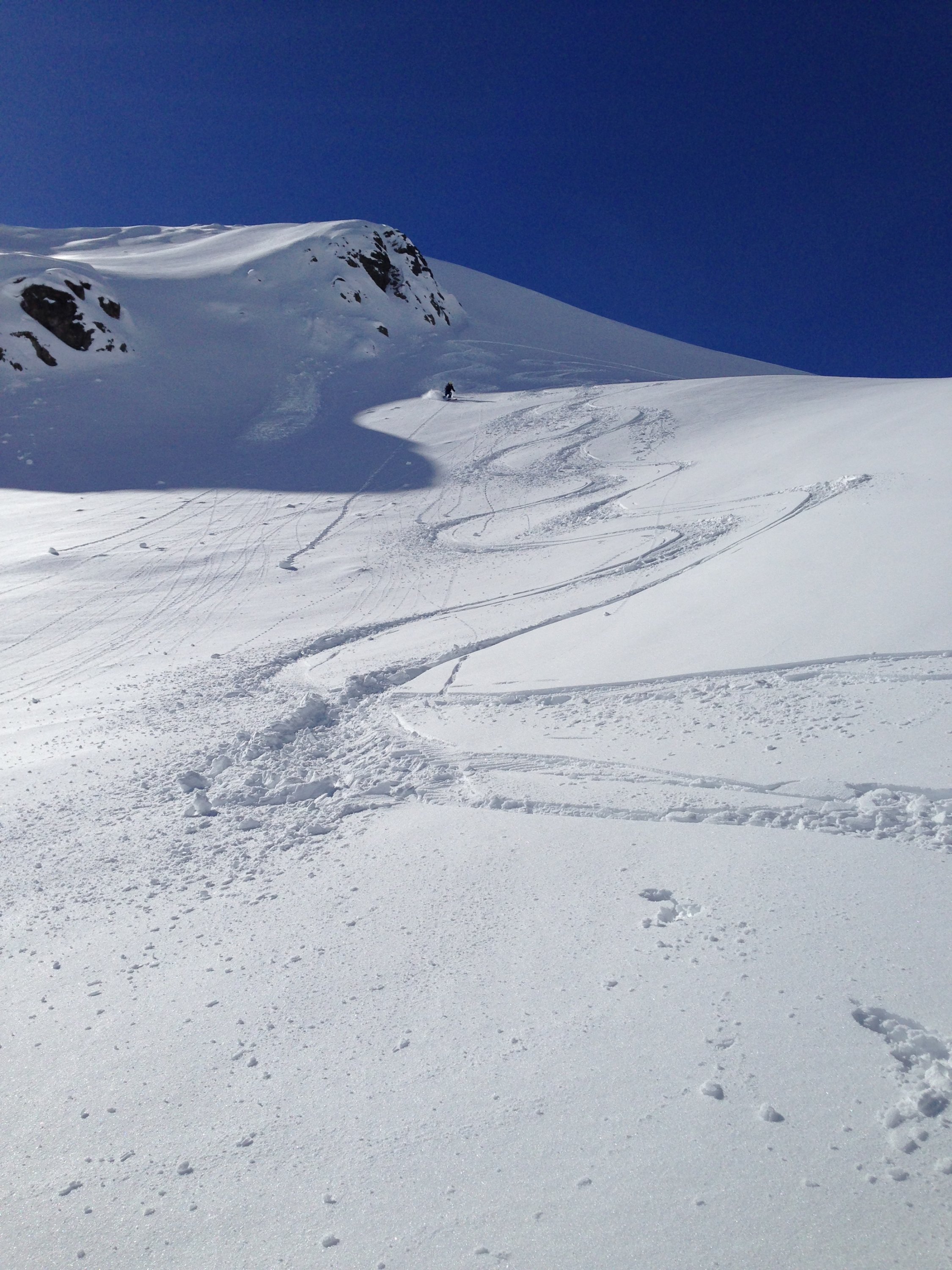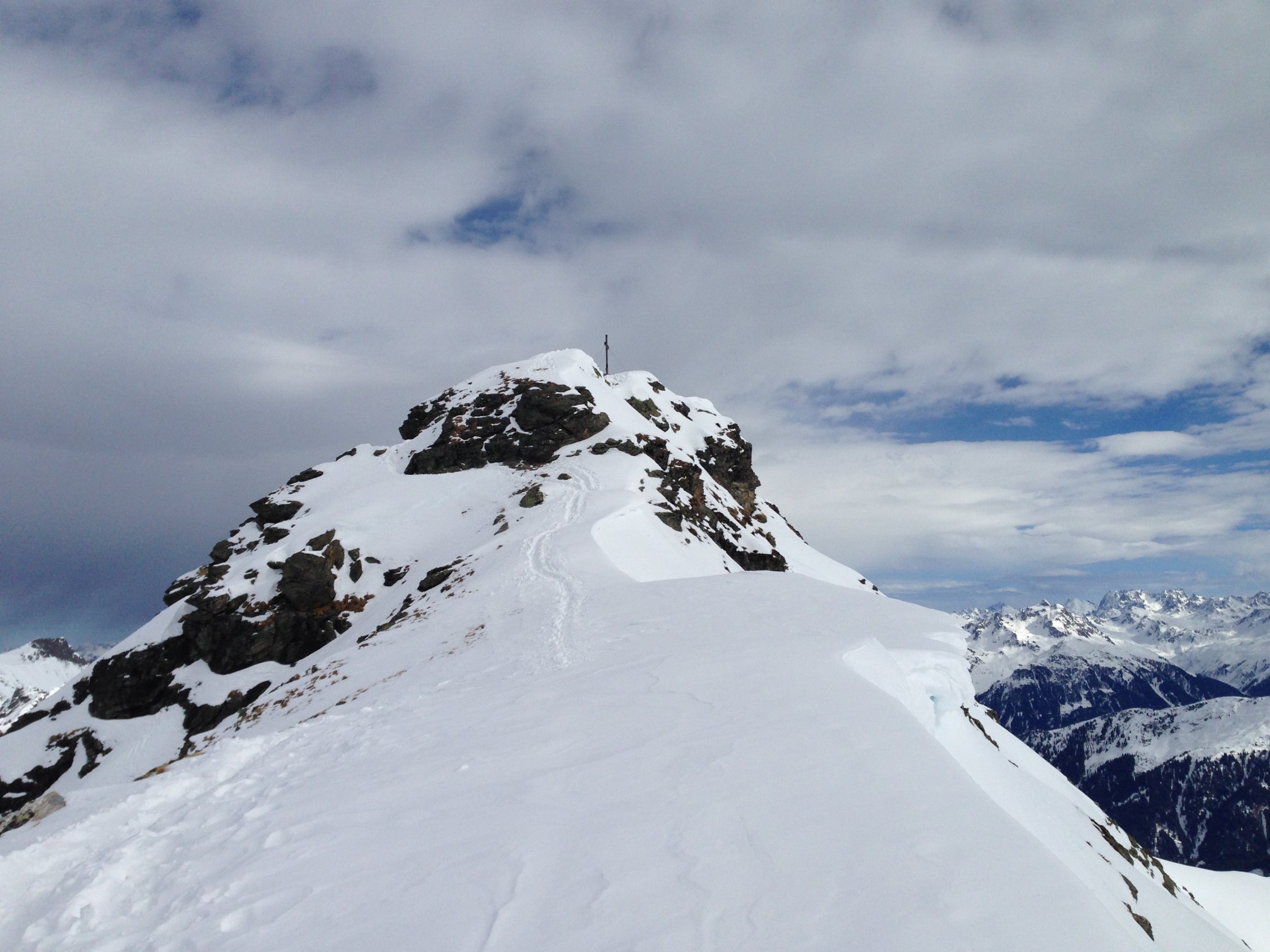 Östlich abgefahren zum P.1951 auf der Ronggalpe. Anschliessend auf der R. 61 aufgestiegen zum Rotspitz.