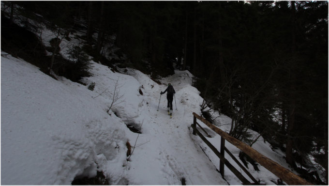 Der Rest war pistenartig ausgefahren, Abfahrt von der Hütte über den schmalen Waldpfad kann jedoch nur noch ganz hartgesottenen Steinskifahrern empfohlen werden. Besser ab Brücke kurz aufsteigen und über den Forstweg nach Wegscheid.