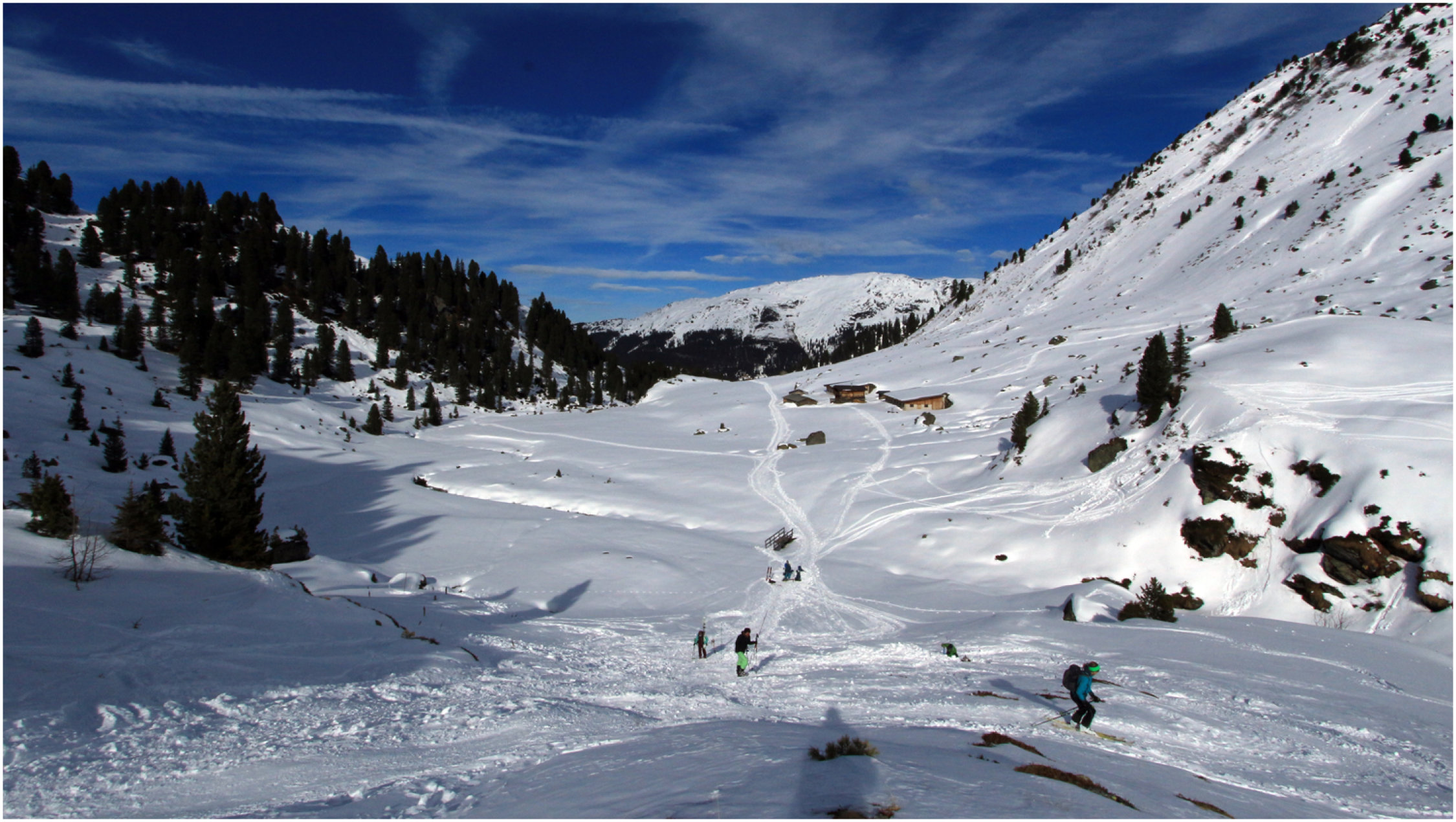 Insgesamt recht brauchbare Verhältnisse, auch wenn die Tour an sich skifahrerisch nicht grade zu den Glanzlichtern gehört.