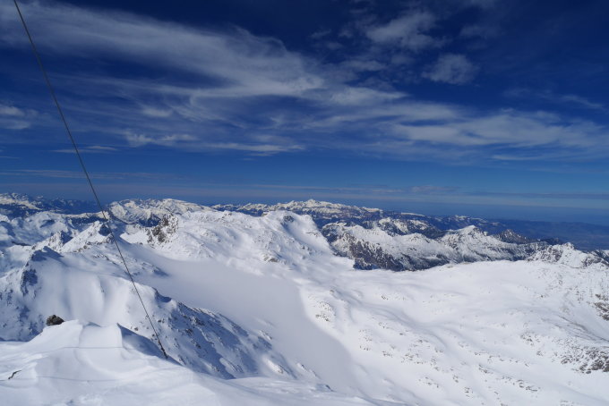 Alles in Allem gut, vom Gipfel bis Totalp Pulver, darunter leichter Harschdeckel, war mittags schön aufgesulzt. Am bösen Tritt und am Gipfelhang ist Vorsicht geboten wg Triebschnee.
