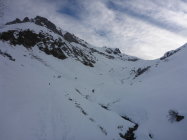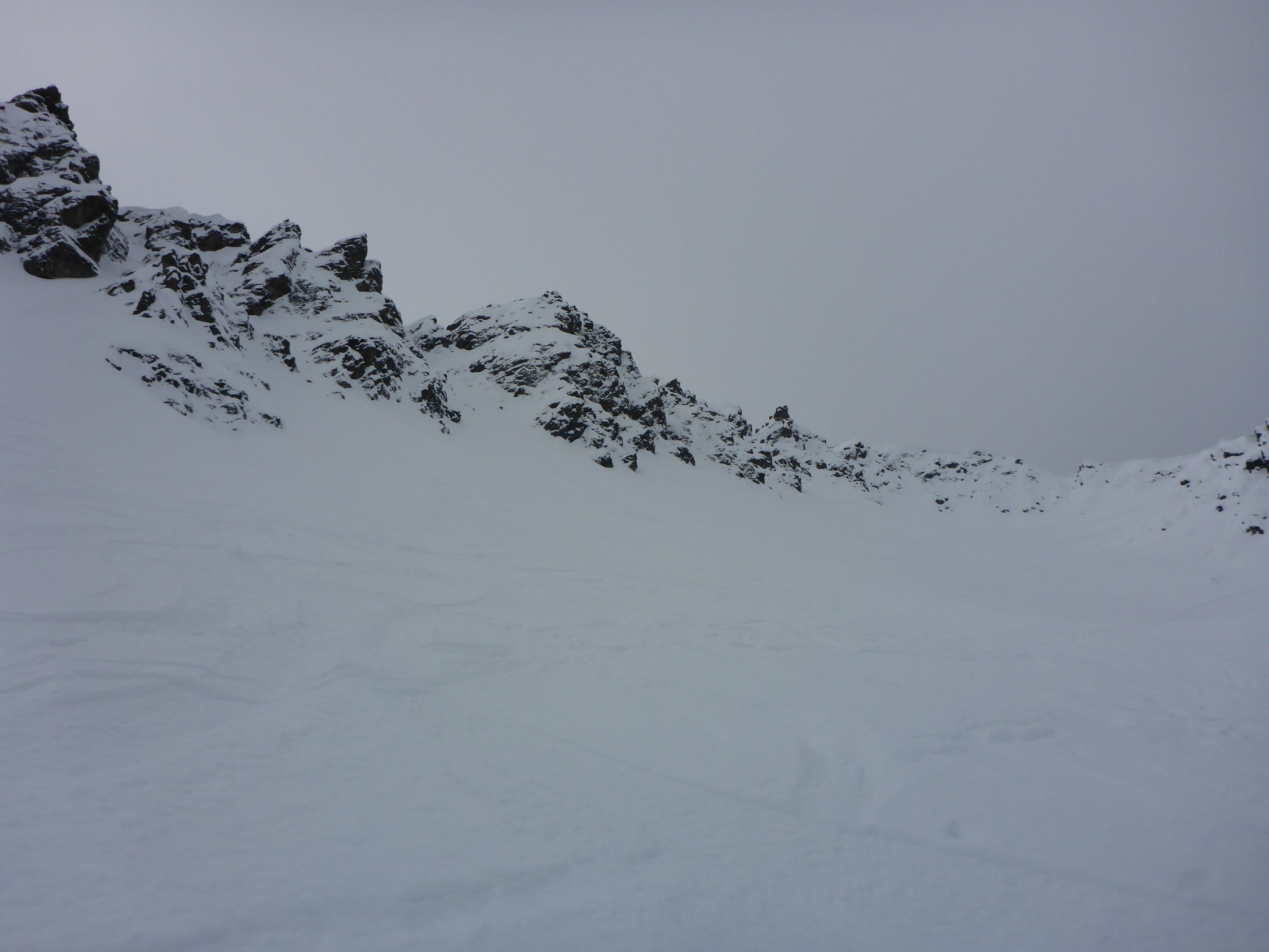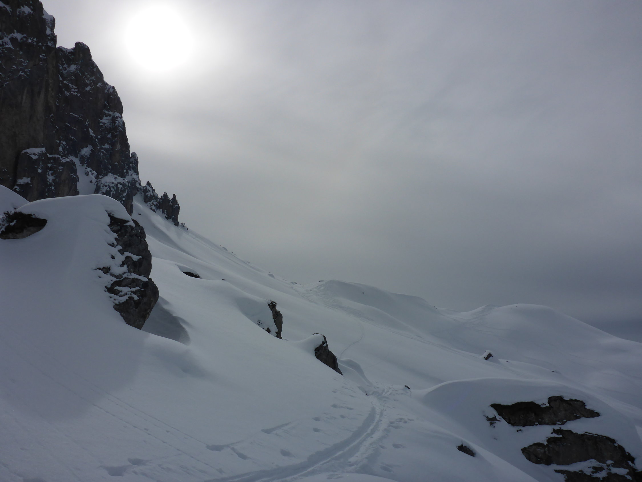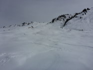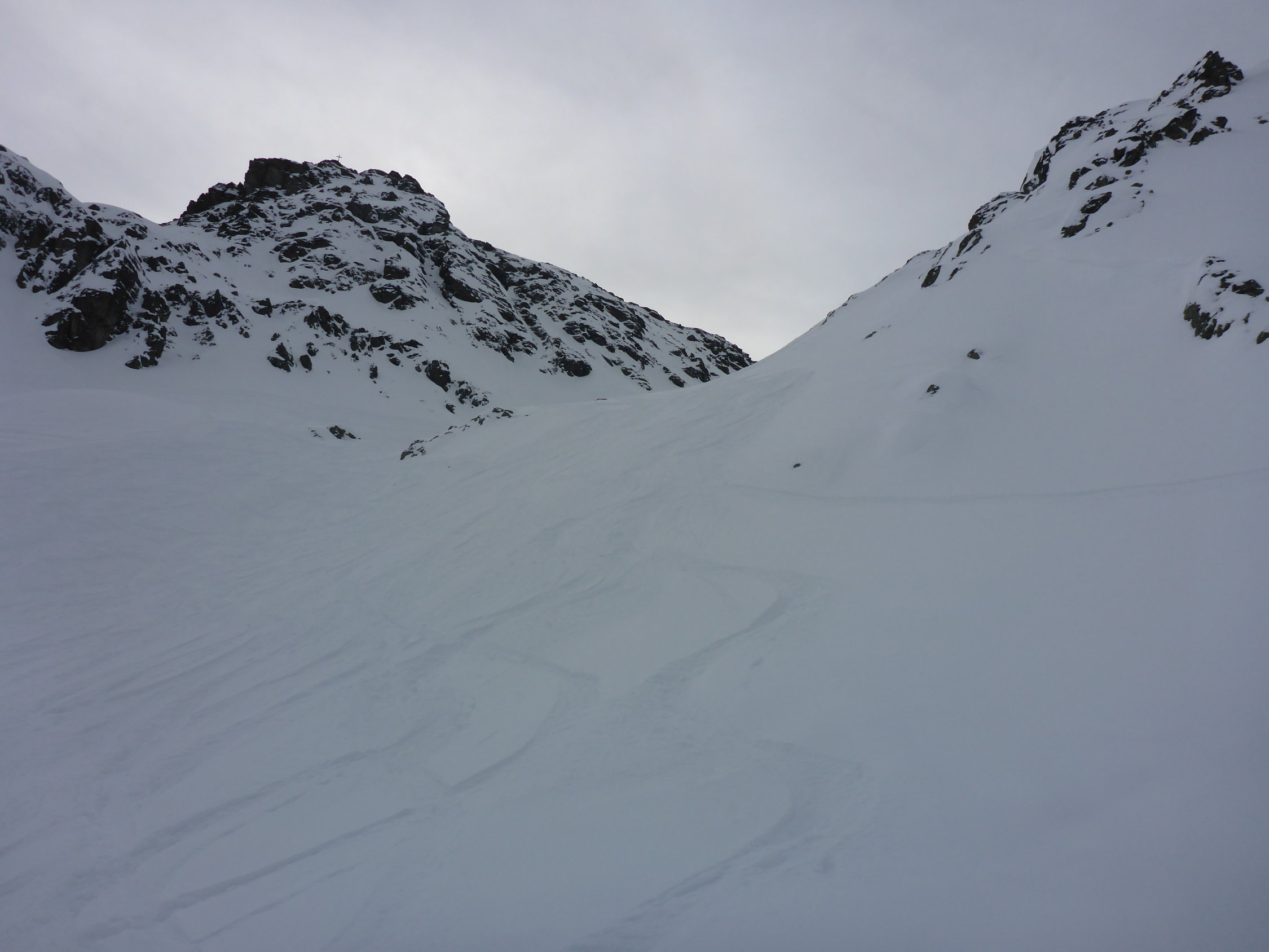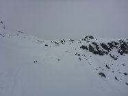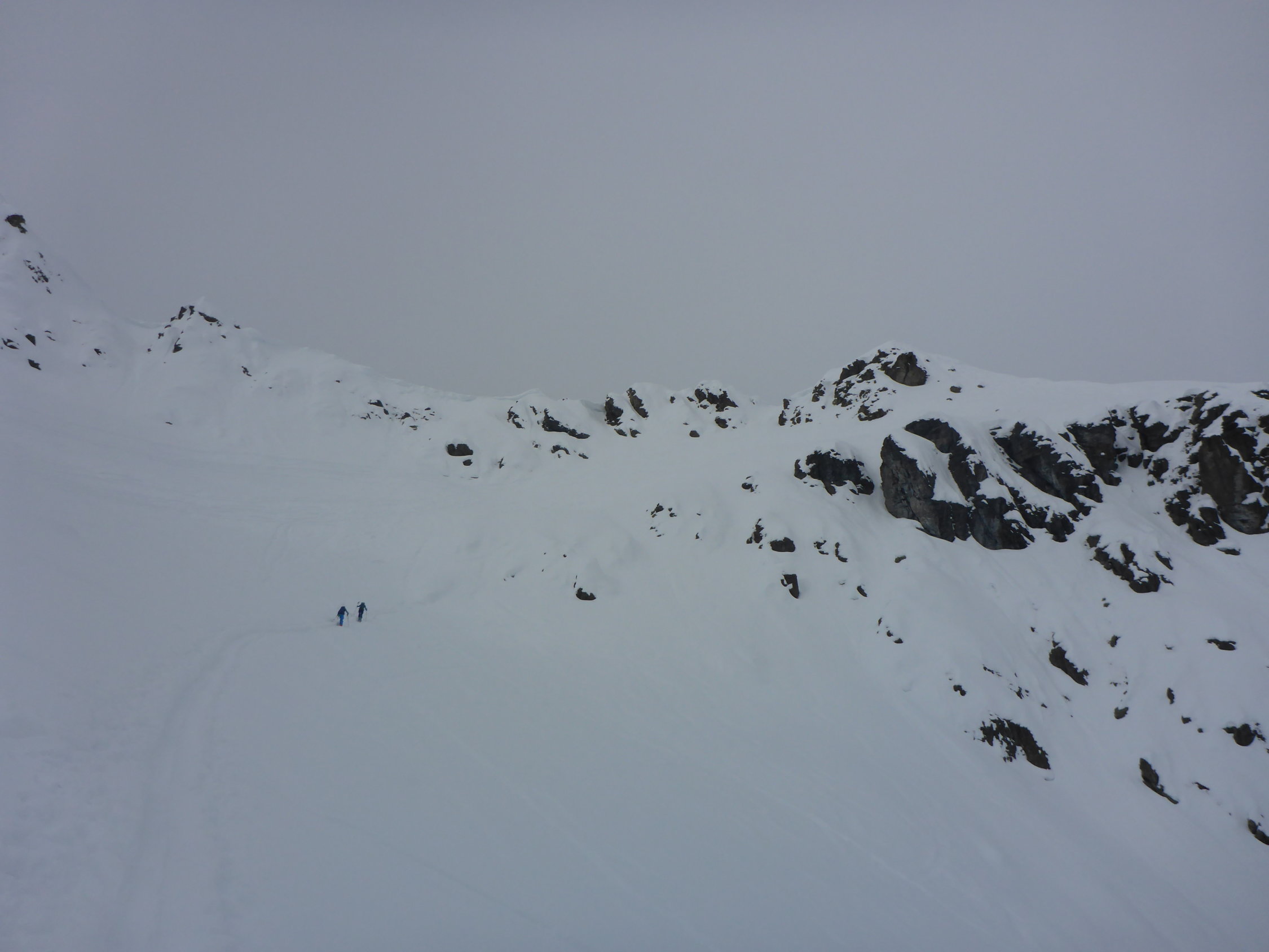 Bis ca 2000m merkt man, dass es wohl reingeregnet hat. Ab 2000 wird es pulvrig und mit zunehmender Höhe mehr. Generell eher wenig Schnee in der Gegend, aber ganze Tour ohne Steinkontakt überstanden.