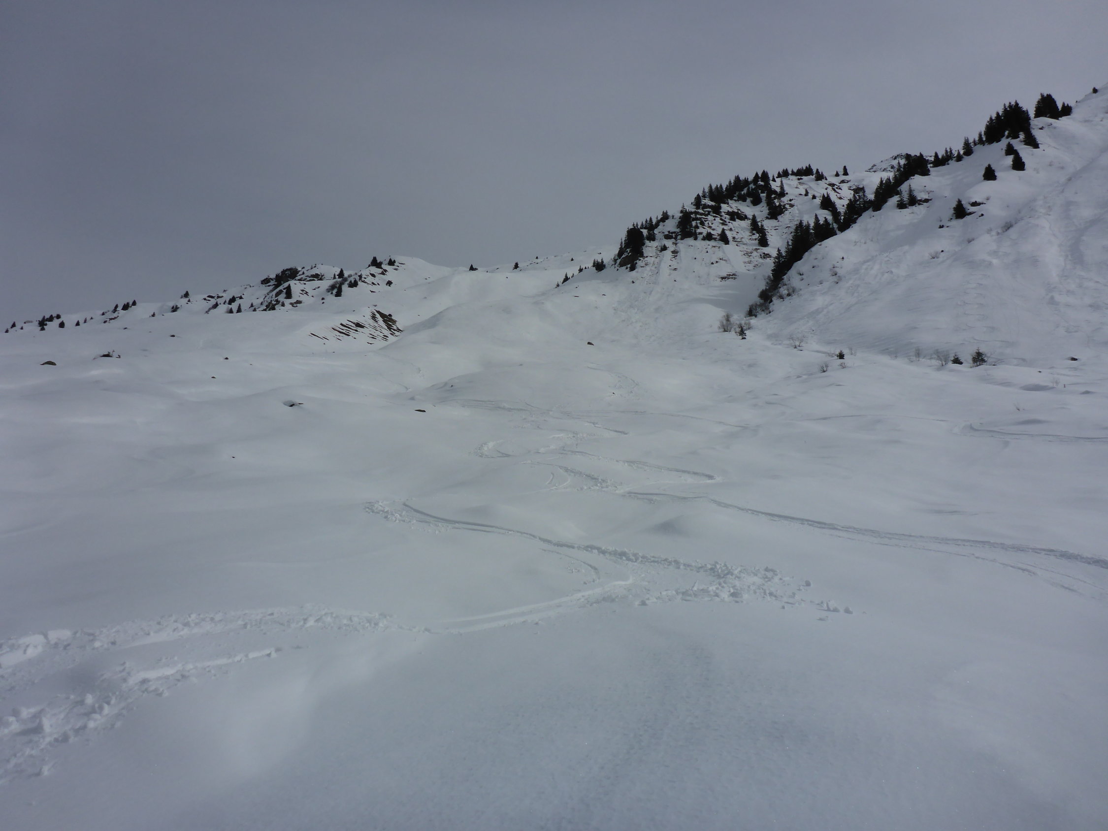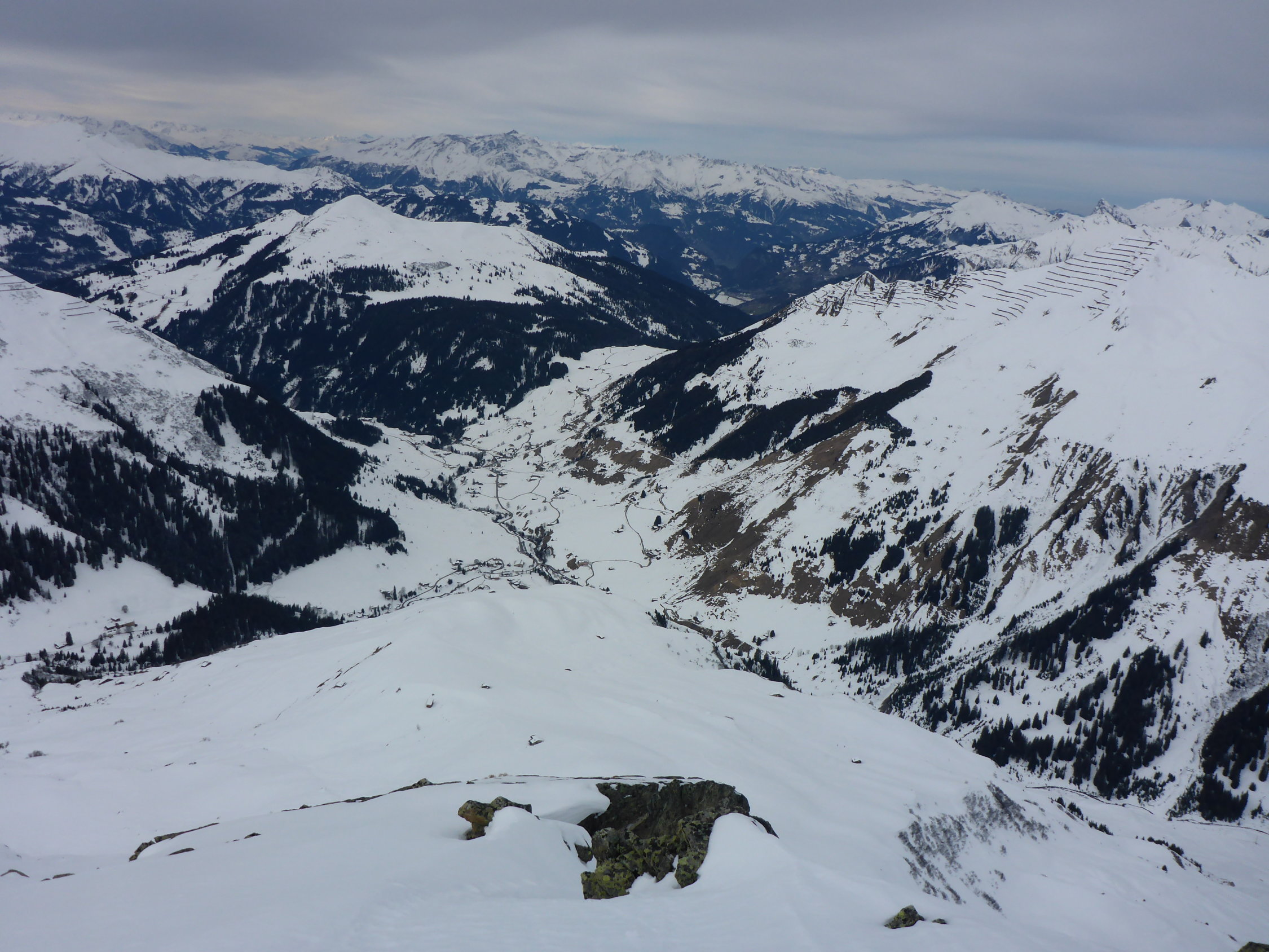 Bis unten ans Silbertälli auf ca 2200 abgefahren und nochmals angefellt, um auf den Schollberg aufzusteigen. Das Silbertälli hatte noch fast perfekten schönen Pulver bis 30cm. Nach dem Silbertälli gegen Norden rausgequert und dann Richtung Boller bis ca 2000m (zu den Streuchern und einem grossen Felsblock) in schönen Powder abgefahren. Nochmals Felle aufziehen und Richtung Süden zum Spitzenbüel aufgestiegen. Vom Spitzenbüel Nordwestlich auf die Strasse nach St. Antönten abgefahren. Bis ca 2000 Pulver, dann 300hm Bruch und ab 1700 Nassschnee bis Sulz auf harter Unterlage ganz gut fahrbar:-)