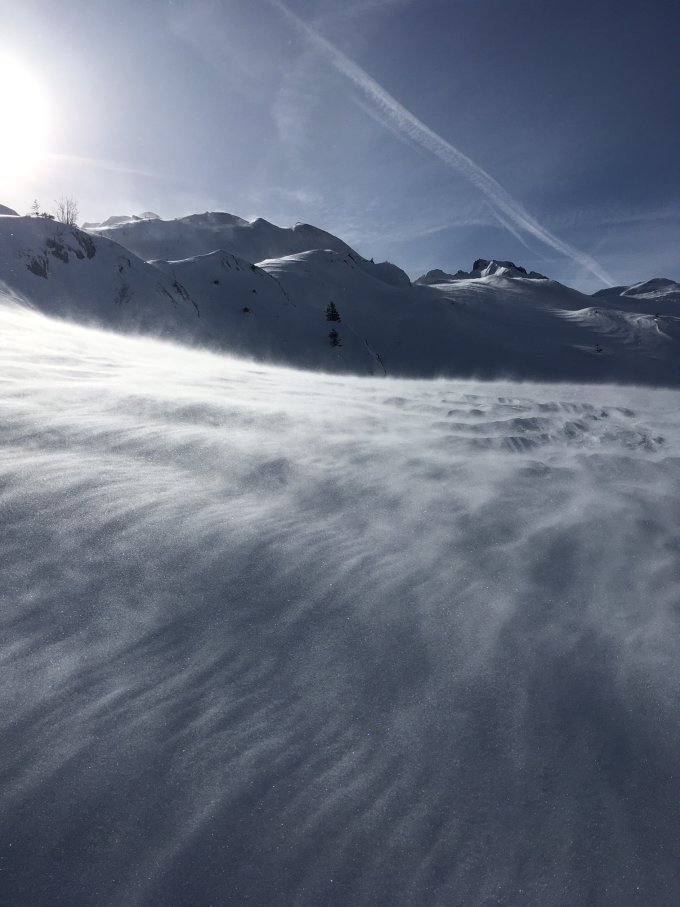 8-tung viel triebschnee vor allem bei der traverse Richtung schnürstöckli.