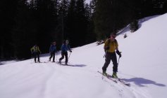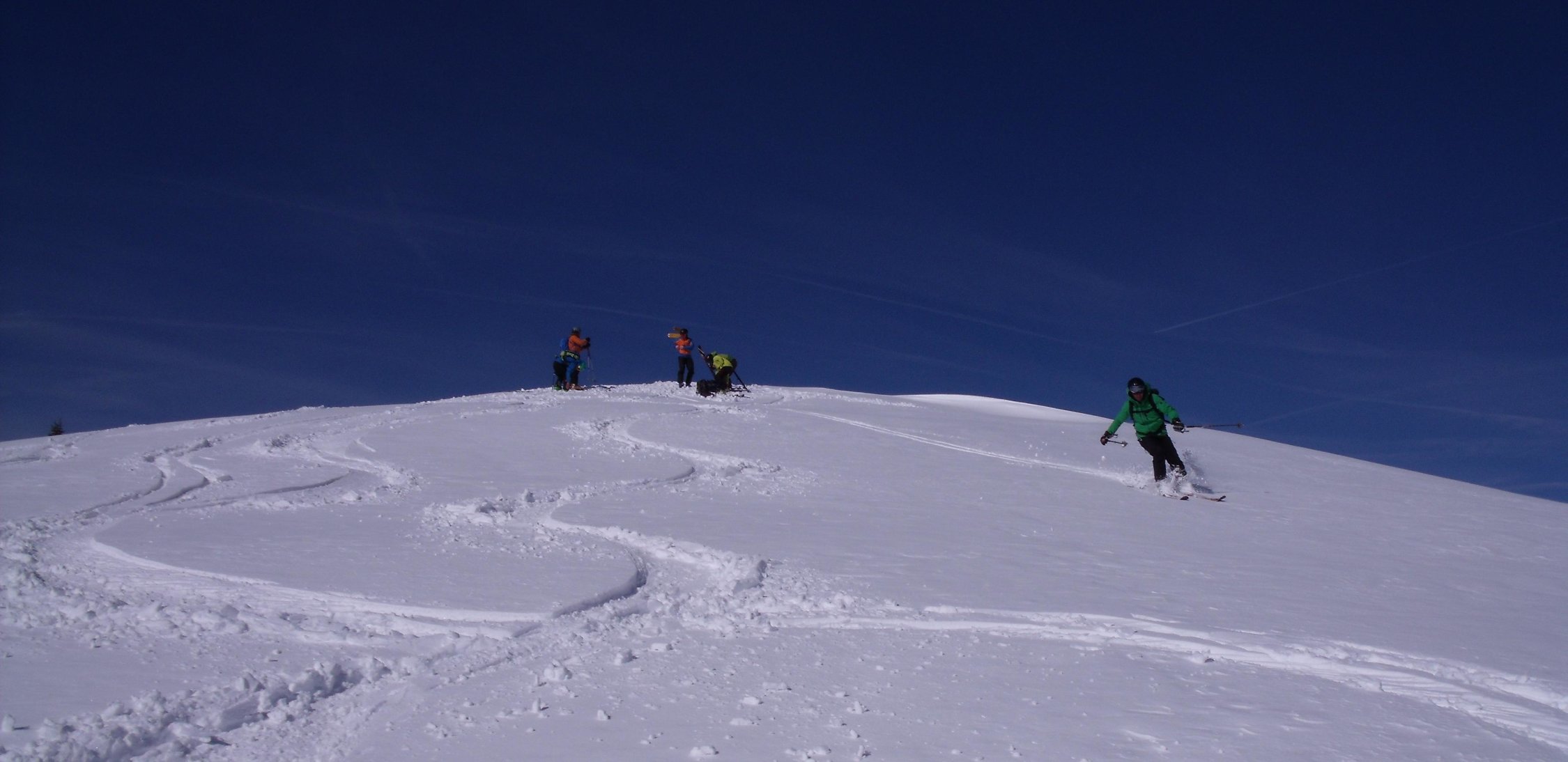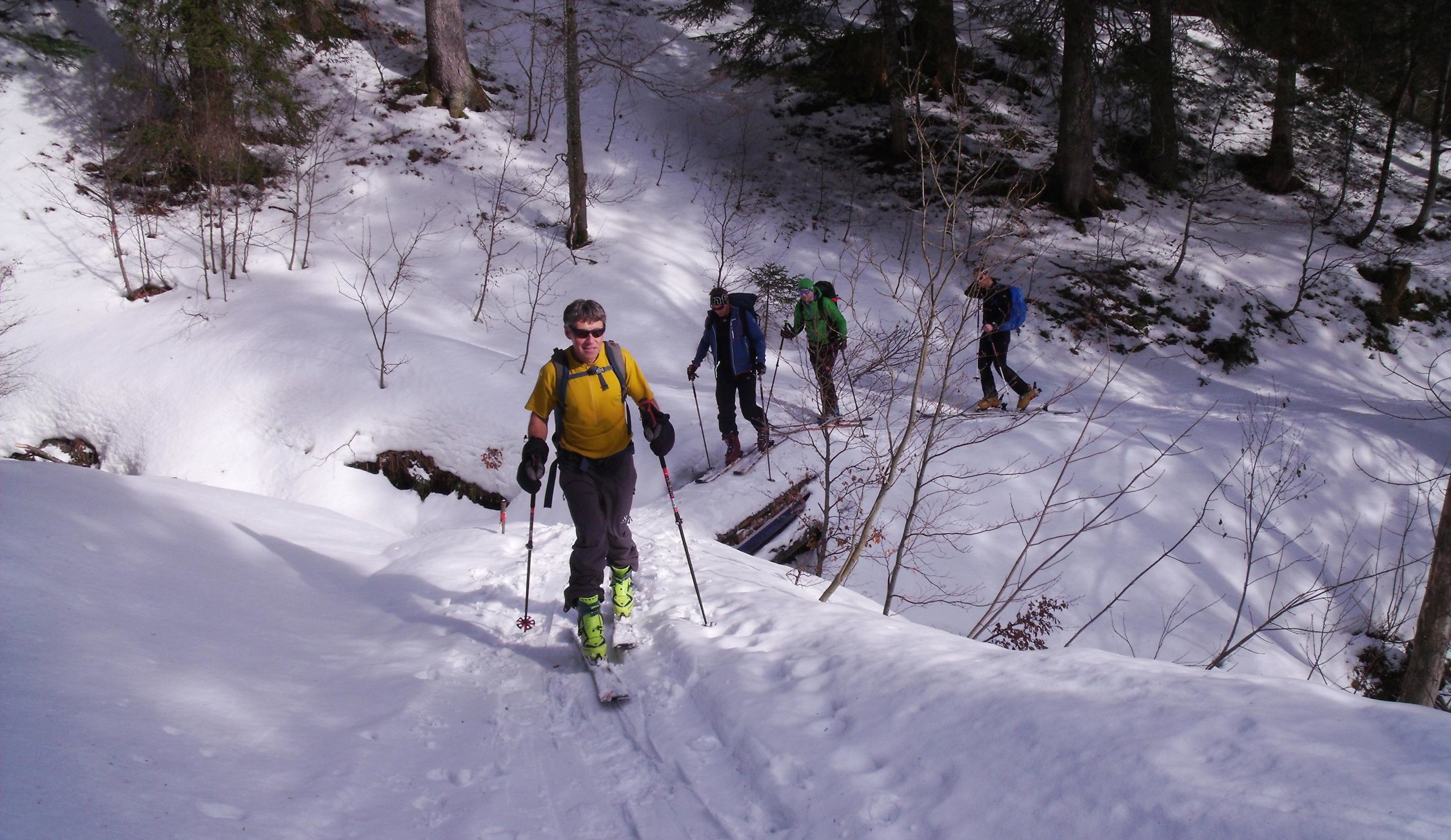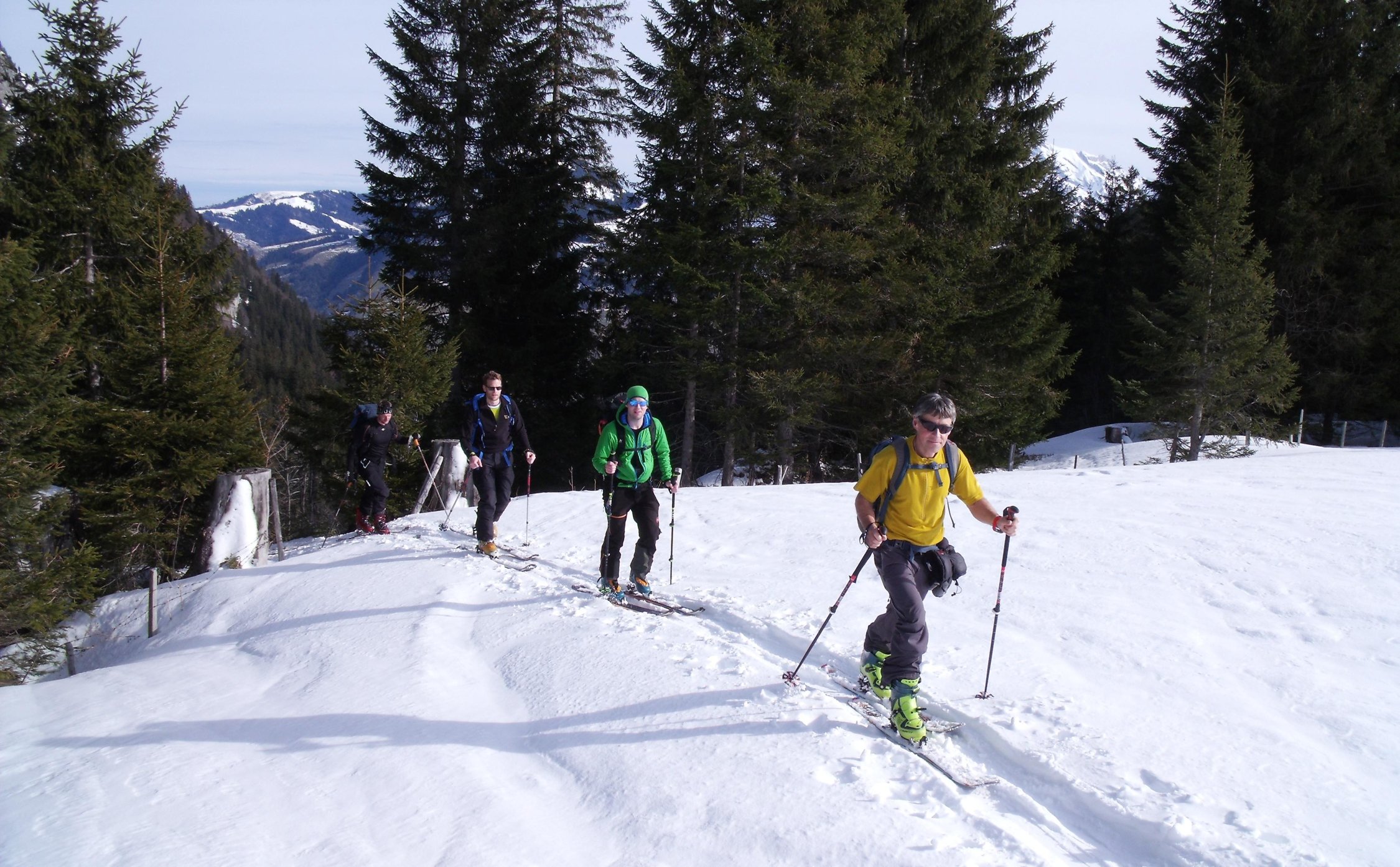 Unsere Autos haben wir beim Parkplatz des ehemaligen Skilifts bei Stein abgestellt. Die Schneedecke war etwas knapp aber gut durchgefroren, sodass der Aufstieg problemlos ging. Mit zunehmender Höhe immer mehr Schnee. Der erste Hang des Gulmen hat sehr wenig Schnee, geht aber gut im Aufstieg. Die Abfahrt durch das Ostcouloir war wunderschön. Auch die Hänge der Häderen waren aufgesulzt und wunderschön zu fahren. Wir konnten ohne Mühe bis zum Talboden nach Stein hinunter fahren.