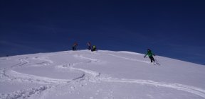 Es hat am Vortag weit hinauf geregnet. Am Gulmen war vom Neuschnee kaum etwas zu spüren. Der Pulverschnee im Ostcouloir dürfte verfrachteter Schnee gewesen sein. Auf der ganzen Tour sehr stabile und sichere Verhältnisse.