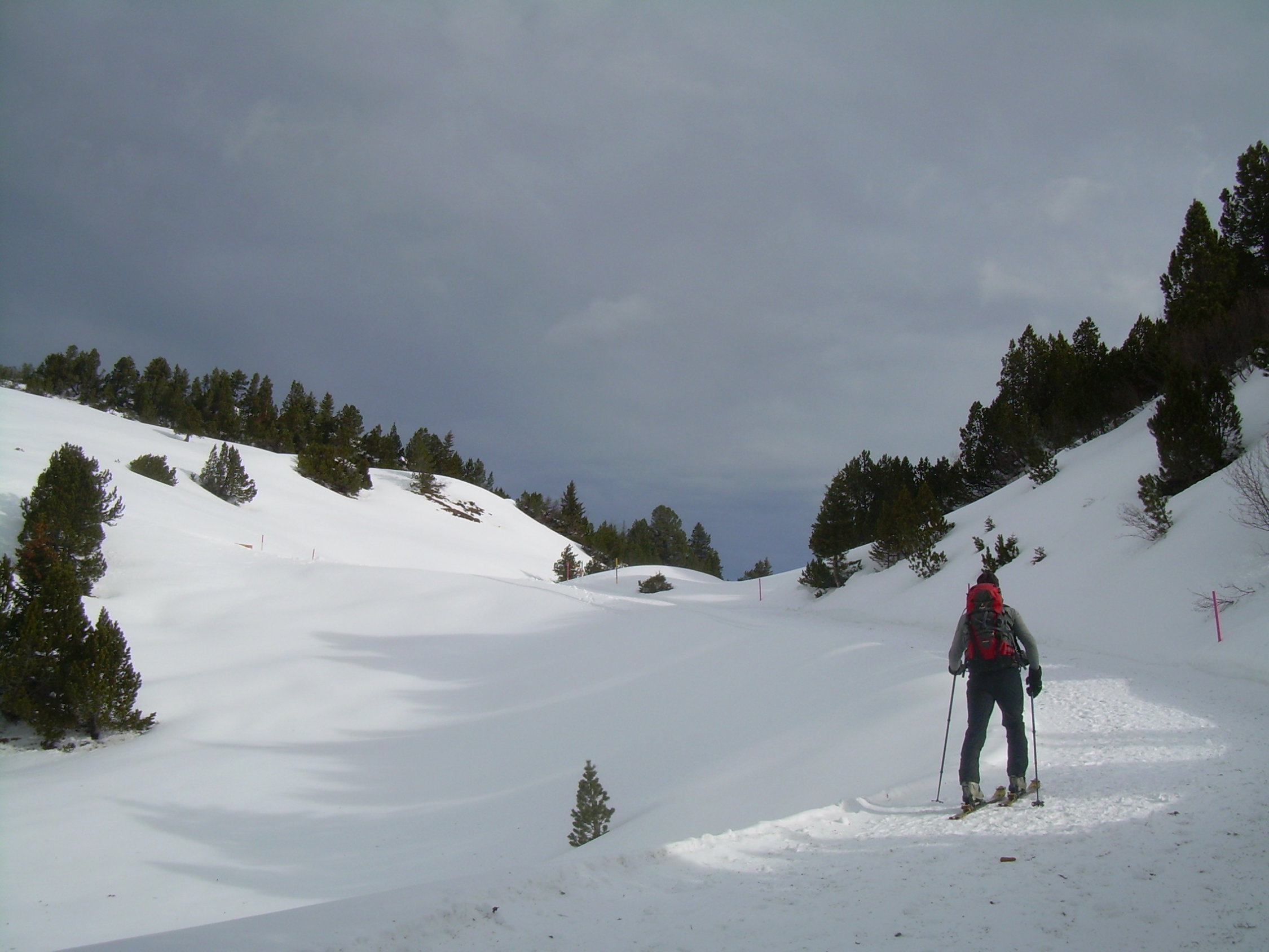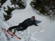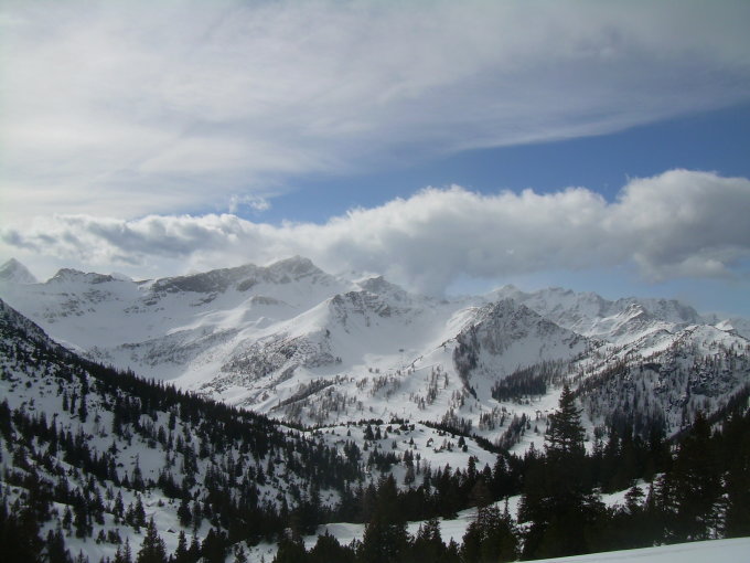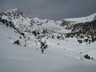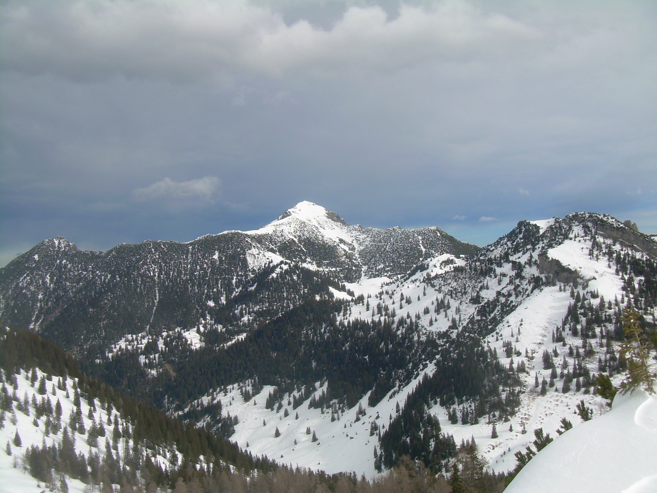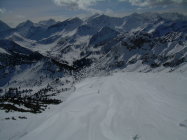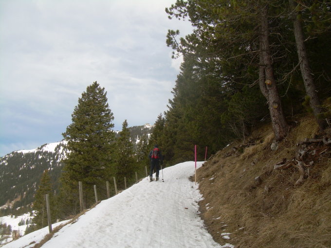 Verhältnisse mit Schneeschuhen siehe oben. Für den Skifahrer bis Gipfel einschließlich Abfahrt des Gipfelhanges ebenfalls gut, danach (ab ca. 1700 m) nur noch "machbar", da der Schnee zusehends schwer wurde mit im unteren Teil geringer Schneehöhe.