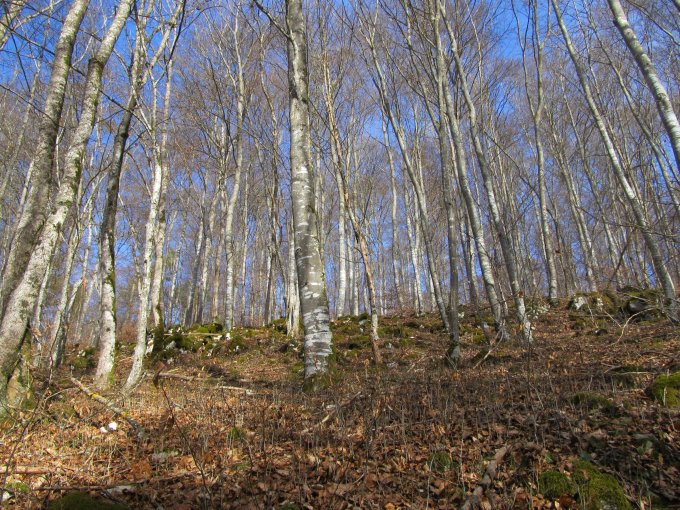Schöne Waldpfade wechseln sich mit Forstwegpassagen ab. Die Felsköpfe waren das Highlight des Tages. Schnee haben wir nur noch an einer Stelle gesehen.
