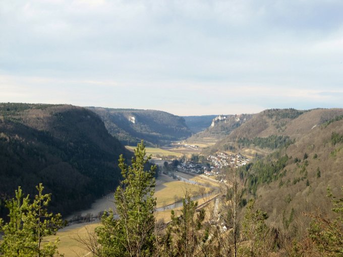 Abstieg auf der Ostseite Richtung Buttenloch (650 m) mit Wiederaufstieg und Abstecher zur Ruine Falkenstein (747 m). Abstieg zur Donau, die bei der Neumühle überquert wird.