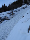 Lawinenkegel (Nassschneelawine) in der Runse auf Sommerweg im Hang La Maulatreys vom Vortag
