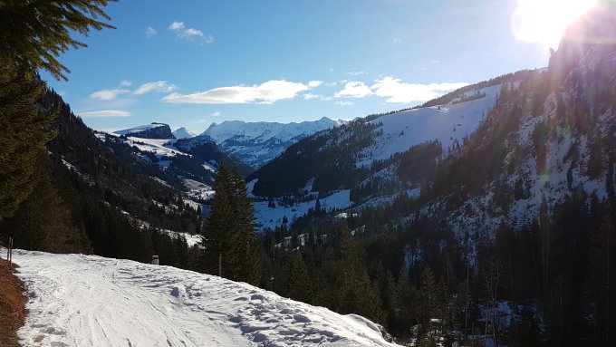 Die ganze ist Route schön eingeschneit und gut zu fahren. Ab Parkplatz Meniggrund durchgehend Schnee.