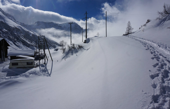Postbusverkehr bis Turrahaus wurde mit Schneeketten sichergestellt.