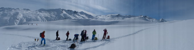 Aufstieg auf frisch geschneiter Schneeunterlage. ca. 30-50cm Neuschnee der letzten Nacht. Ideale Verhältnisse. Sehr angenehmer Aufstieg. Das günstige Wetterfenster genutzt. Zuoberst im Gipfel liegt nicht viel Schnee. (Abgeweht)