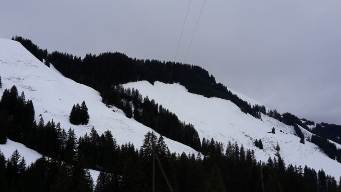 Regengrenze war oberhalb Gipfel. Schnee war sehr nass und schwer. Hat aber genügend ab der Kurve.