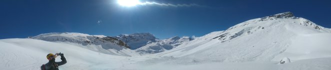 Viele Wumm Geräusche und eindrücklich grosse Lawinen aus allen Exposition en.