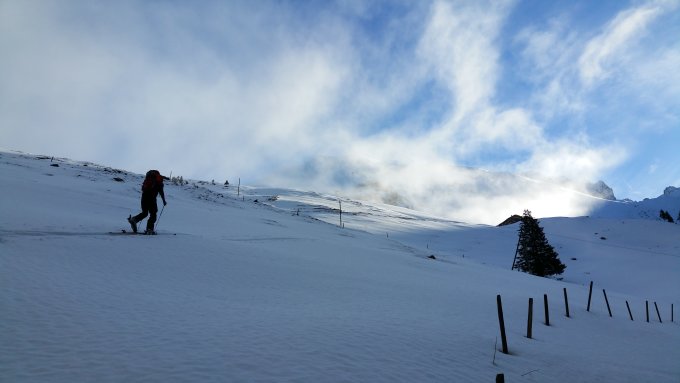 Abfahrt bis Bunderchumi tiptop, von da bis Vordere Bunder mühsam und harschtig, danach bis auf 1600 noch mal angenehme Sulzfahrt.