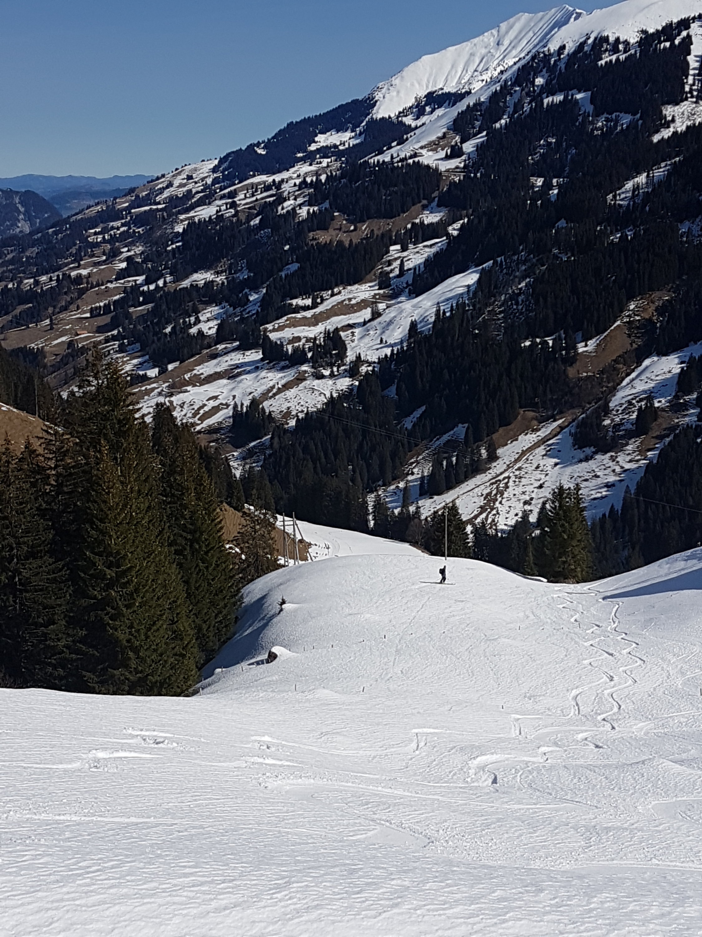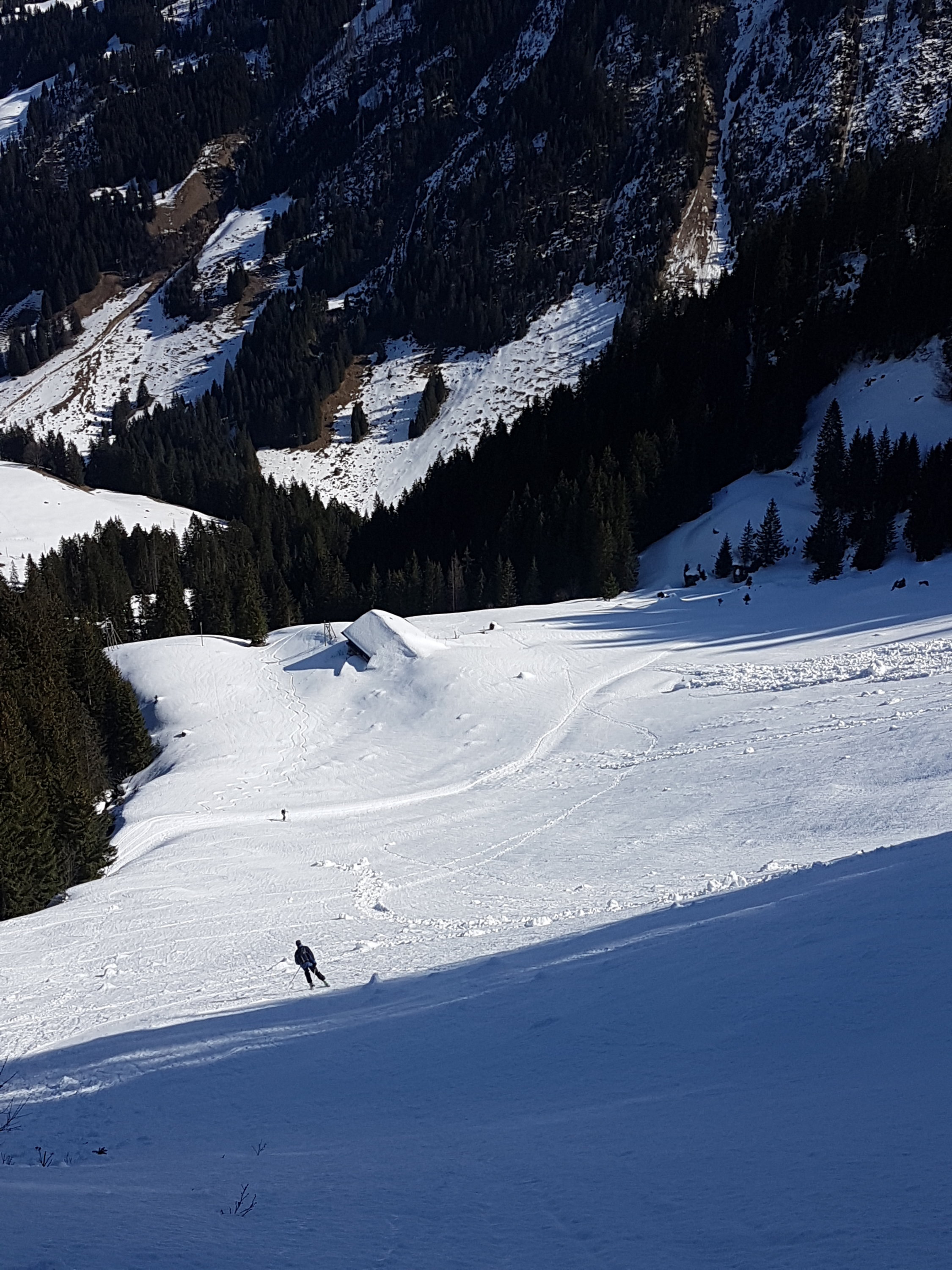 Perfekte Frühlingsbedingungen. Tragende, gefrorene Schneedecke. Harscheisen nötig. Es hat am Donnerstag bis in den Gipfelbereich geregnet. Abfahrt vom Grat 11 Uhr ideal.
