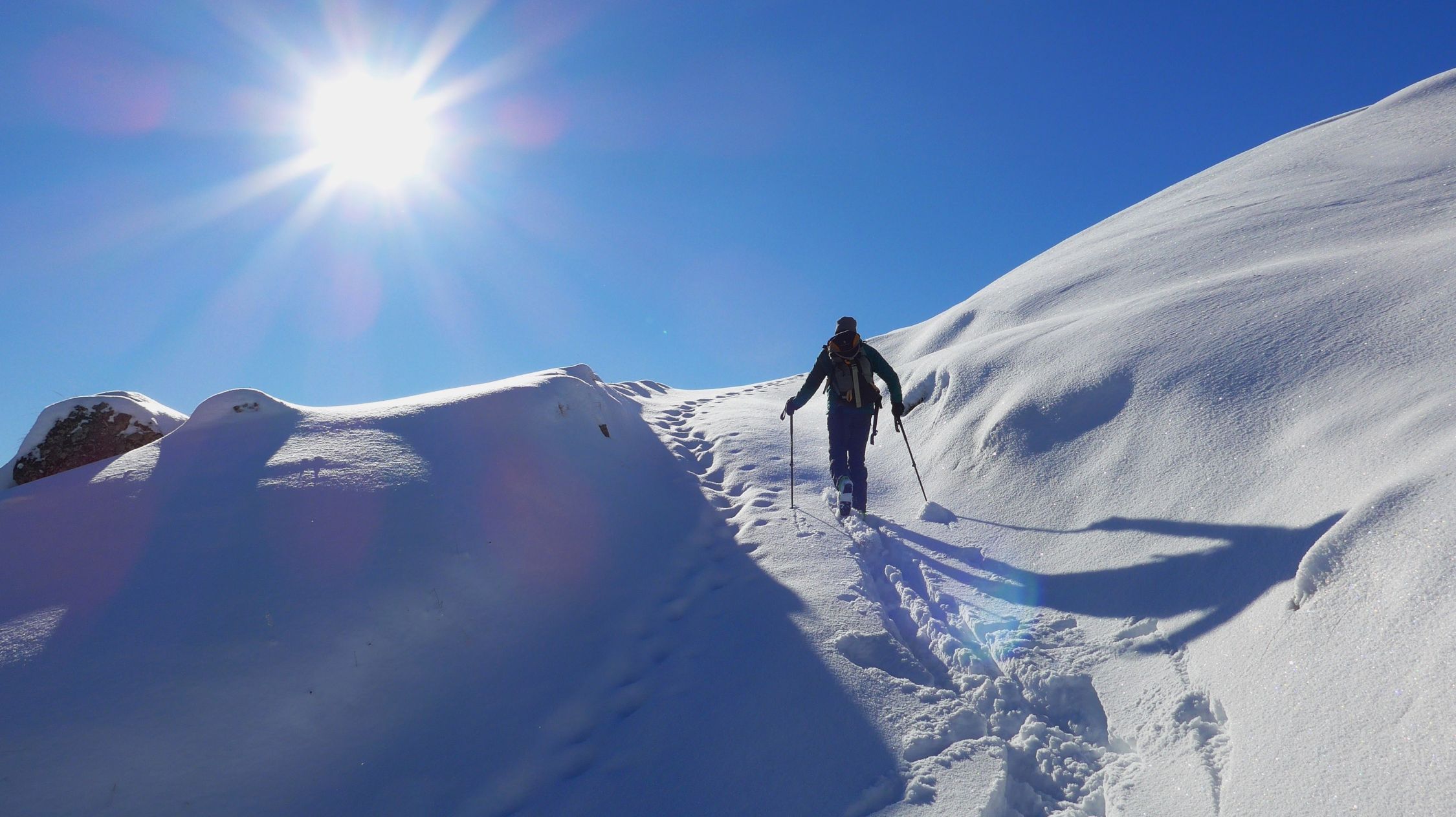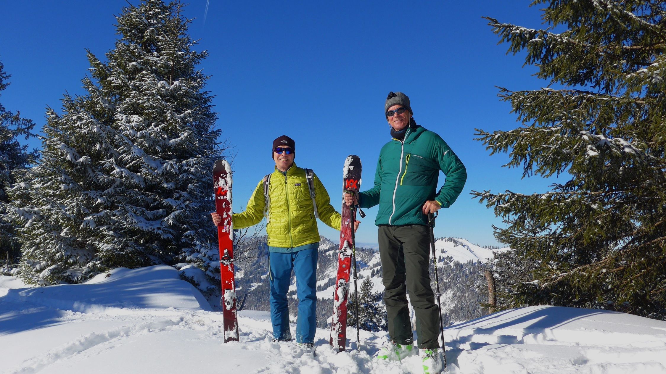Wer am Östlichen Koppachstein Pulverschnee erleben will, muss schnell sein. Der Aufstieg ist pfeilgerade nach Süden exponiert. Die Sonne verdirbt hier den Schnee sehr rasch. Kurze Tage und ein paar Grad unter Null sind perfekte Zutaten. Der Aufstieg, meist dem Güterweg folgend, über mehrere Alpen, ist heute ein Wintergedicht. Bei windstillen Verhältnissen sitzen wir lange oben und geniessen. Der Abfahrtsflow ist dann irgendwo im nirgendwo. Dank des Alpweges ab der Hochleckachalpe kommt aber doch noch bescheidener Fun auf und so haben wir den Winter wieder lieb, fast wie eh und je. Wir grüssen Sigi und Geli und wünschen euch noch viele tolle Bergerlebnisse.