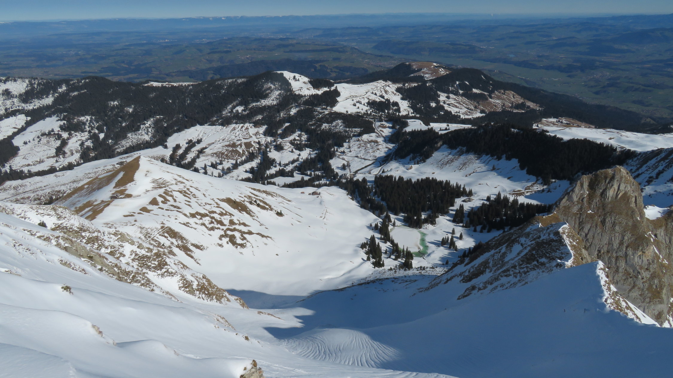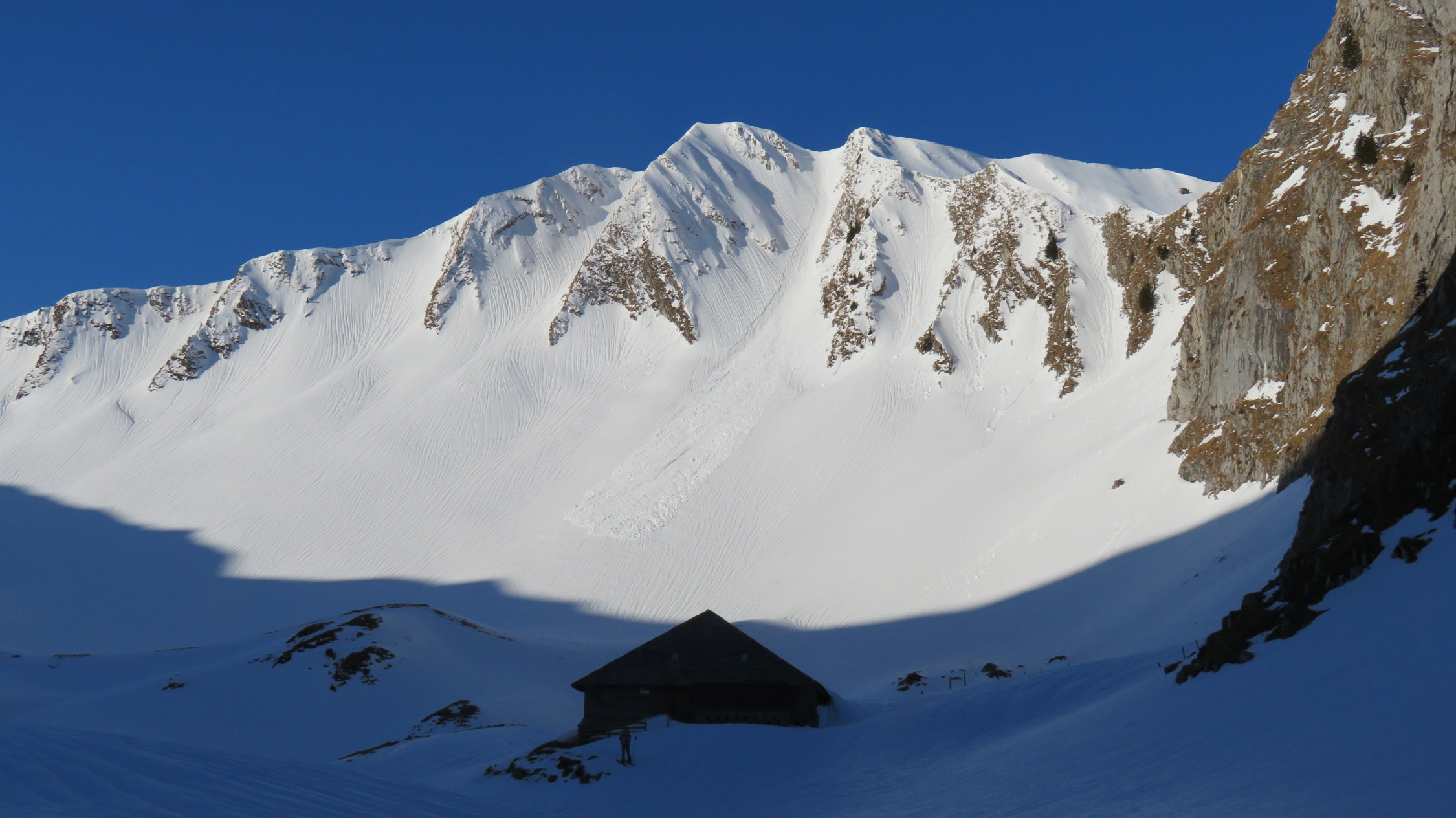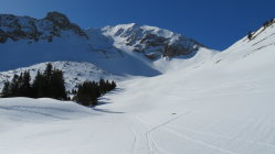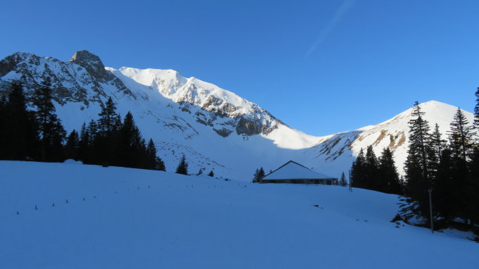 Ich bin unter den Felsen ganz hoch Richtung Birehubel und dort war dann der perfekte Sulz bis zur Unteren Gantrischhütte hinunter