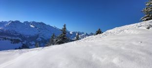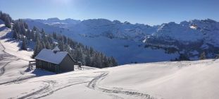 Laucherenstöckli (1753m): Von Illgau der Abfahrtspiste entlang bis Gipfel