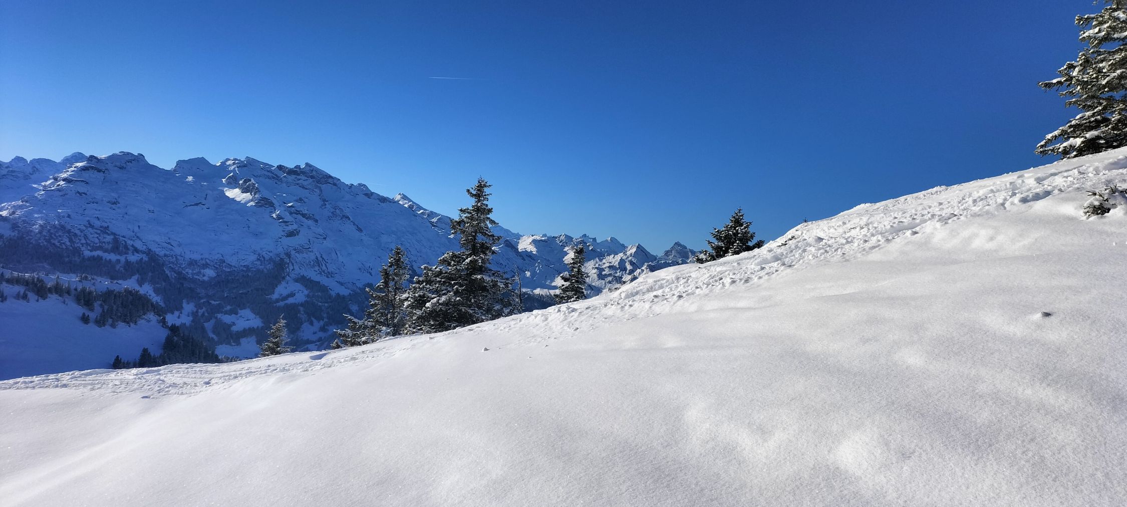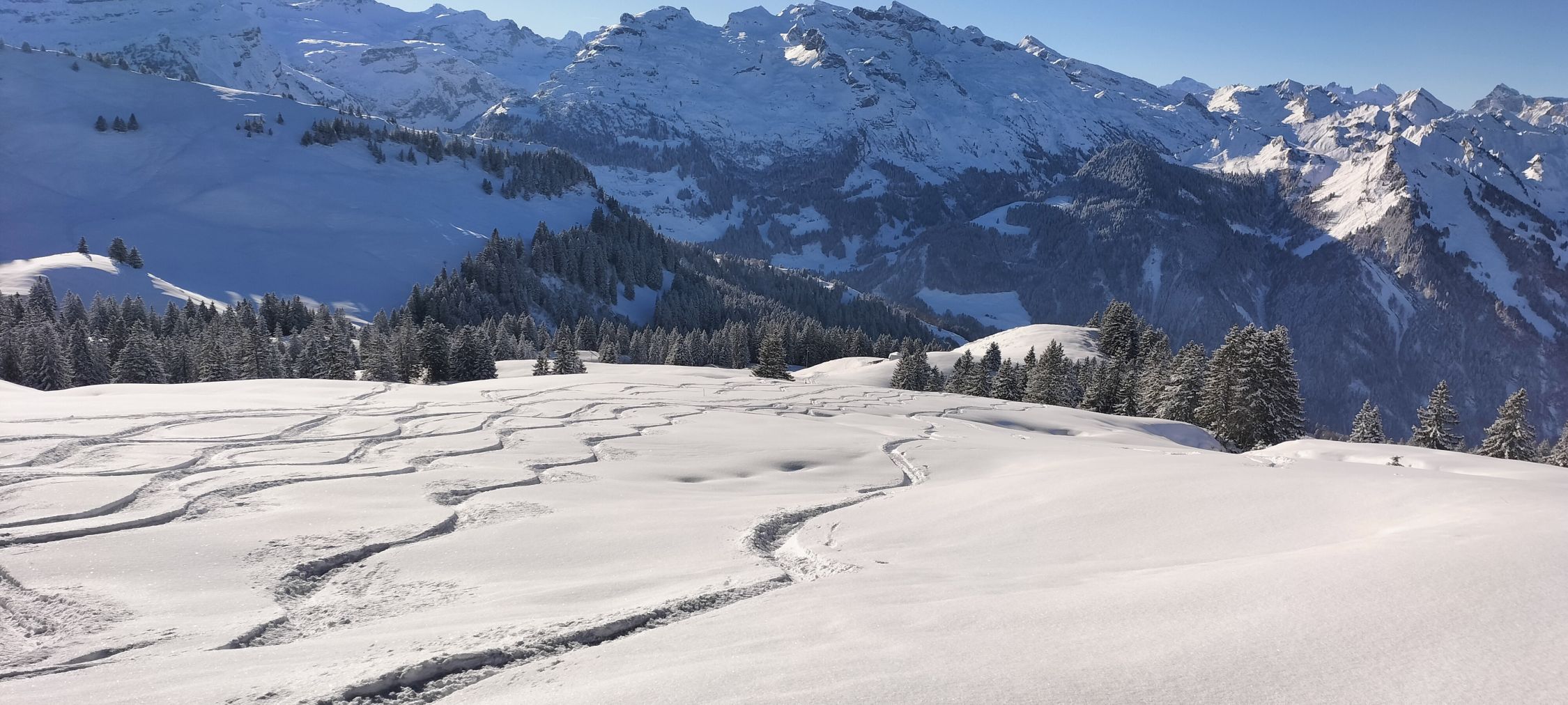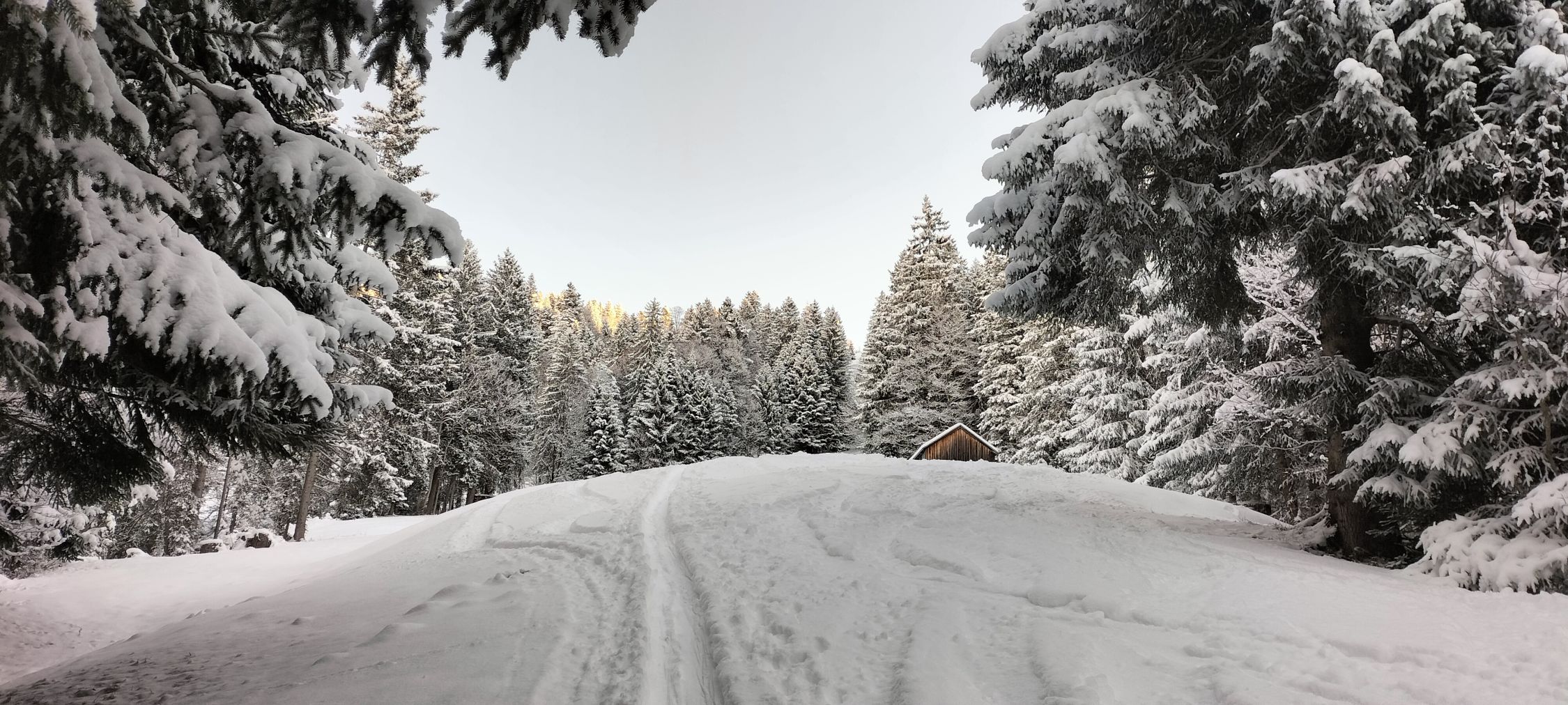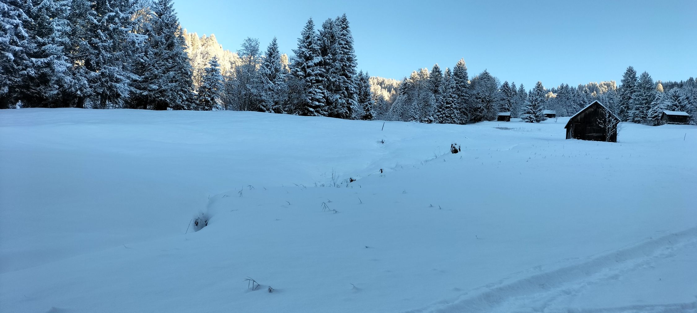 Es hatte heute 20 - 30 cm Pulverschnee auf der Route, leider ist die Unterlage vom November weg, bei scharfen Kurven kratzte es immer wieder auf dem hart gefrorenem Untergrund.