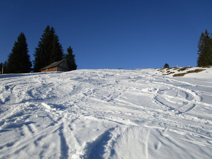 Ab Schlund weiterhin gut machbar, es wird einzelne kurze Tragstrecken geben, Hirsegg via Stächelegg Schlund nicht mehr lange genügend Schnee bei den Temperaturen.