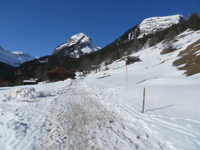 Von der Lobhornhütte schöner Sulz bis man in den Wald kommt, dort war denn der Schnee schon recht nass und schwer. Wir mussten die Ski einmal abziehen.
