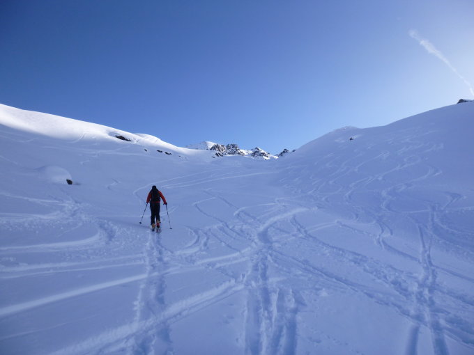 Frühlingshafte Verhältnisse. Gute Aufstiegsspur bis zum Gipfel. Abfahrt um ca. 11:15 Uhr durchs Tschuggentälli zum Parkplatz Tschuggen. Im oberen Bereich die Südhänge bereits sulzig, Schattenhänge pulverig, im unteren Teil Bruchharst bis Sulzschnee, ganz unten bereits schwerer Nassschnee.