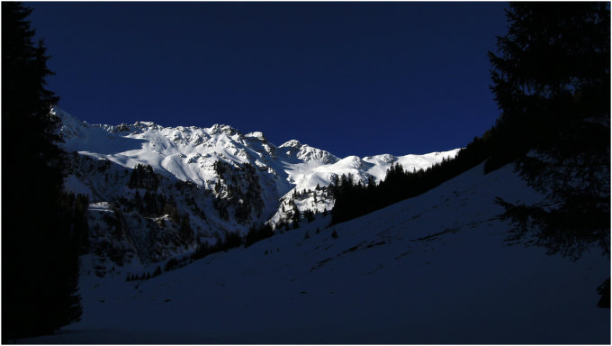 Bis Greitalm durchgängig Schnee auf harter Unterlage. Ab Greitalm bis etwa Farmkehralm gedeckelt mit ein/zwei cm Pulver drauf. Ab dort zunehmend mehr Schnee, teilweise gedeckelt bis zum Stein am Gratansatz. Ab dort natürlich zuwenig Schnee, man konnte sich aber gut durchwursteln. Gipfelhang hart aber durchgängig Schnee.