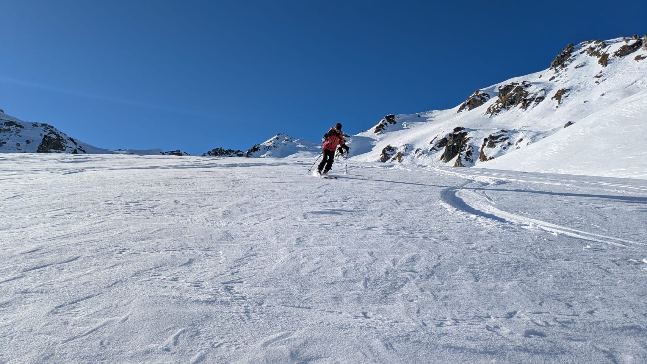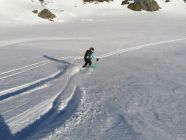 Ausgezeichnet: D.h. Kaiserwetter und 20cm traumhafter Pulverschnee. Es war ein Traum. Es hat wunderbare Mulden, Combes und Couloir die Wind geschützt sind, und lange ausgezeichneten Pulverschnee haben.