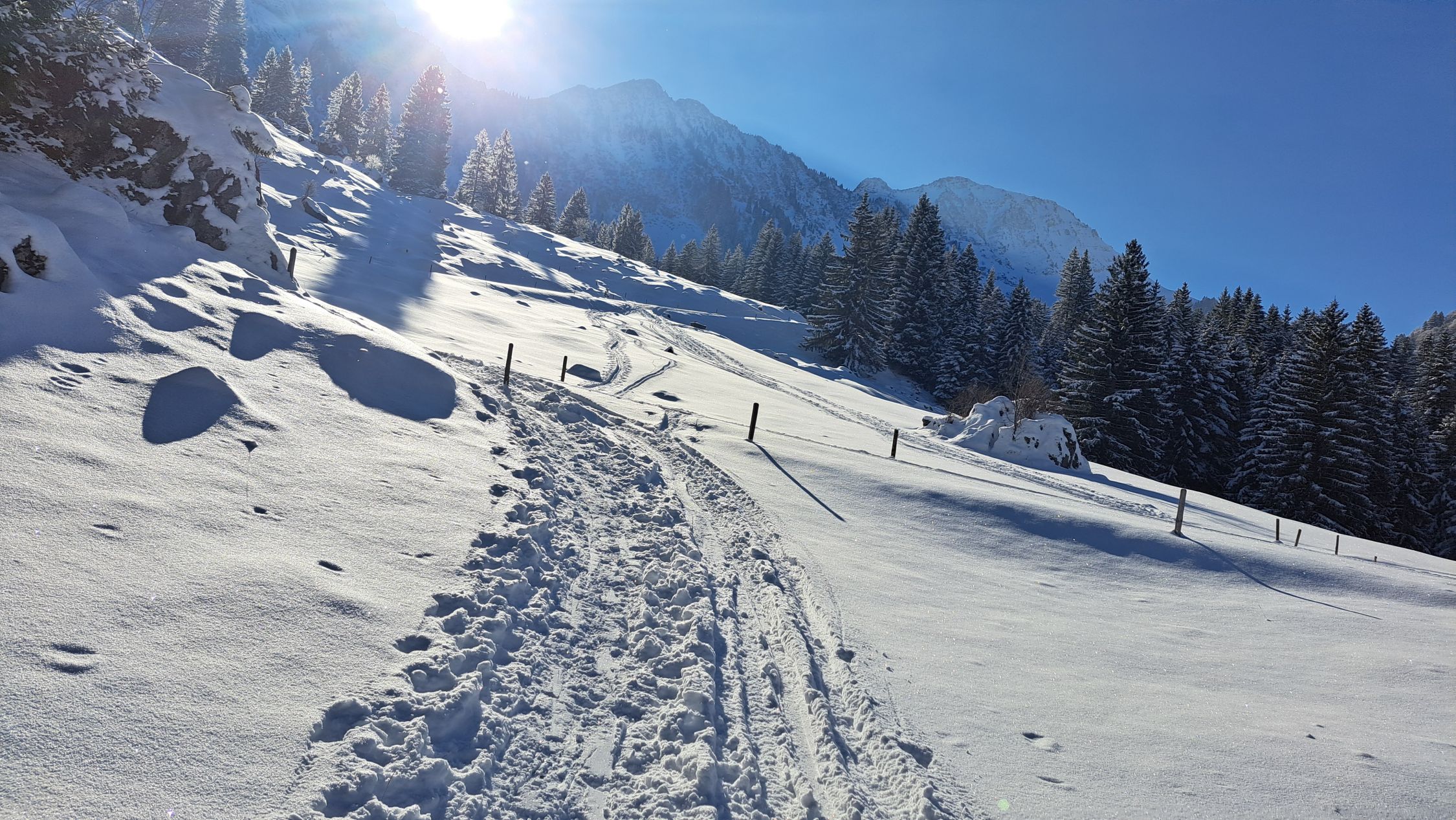 Start bei zapfigen -15 Grad? Weniger Schnee als in den diversen Apps angezeigt. Am Start ca. 20 cm Neuschnee ohne Unterlage bis zum Risipass. Kurz danach bei 1500 umgedreht weil im südseitigen Gipfelhang überall das Gras rausschaut. Bei sehr vorsichtiger Abfahrt nur selten den Boden berührt.
